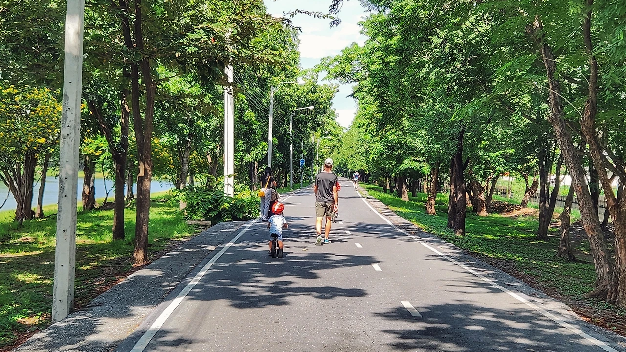 넝번 호수공원(Nong Bon Lake Park)의 황홀한 경관. 자전거를 타고 달리다 몇 번이고 멈추게 한다.넝번은 방콕 시내와 수완나품 국제공항 딱 중간에 위치한 동네다. 딸랏 롯파이 야시장(씨나카린 지점)이 있는 그 동네라고 하면 "아, 거기!" 하는 여행자들이 꽤 많을 것이다. 야시장만큼은 잘 알려지지 않았지만 멋짐으로는 절대 뒤처지지 않는, 내가 꼽는 이 동네의 진짜 매력 세 가지는 이렇다.