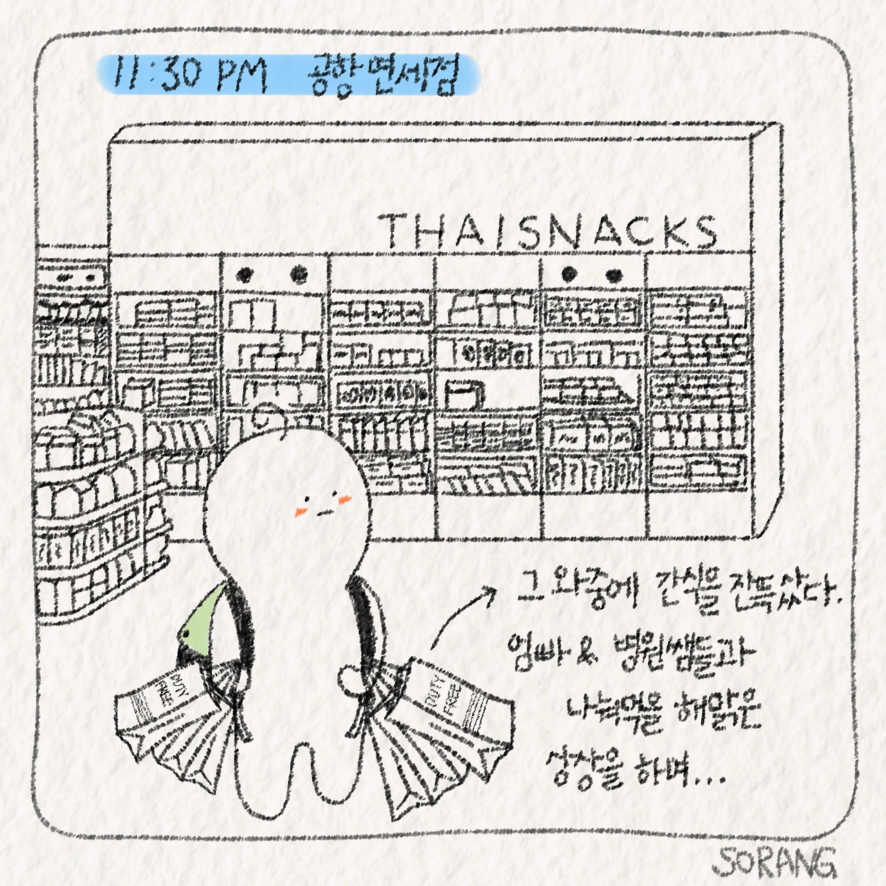 체크인 카운터 앞에는 줄이 길게 늘어서있었다. 방콕 여행을 마치고 한국으로 돌아가는 듯 보이는 사람들이 대부분이었다. 그 틈에 섞여있으니 '살다 보니 이렇게 비현실적인 순간을 겪어보기도 하는구나' 싶었다. 불과 다섯 시간 전까지만 해도 나는 그냥 맛있는 거 먹을 생각에 들떠있는 사람일 뿐이었는데. 별안간 실명위기를 맞아 여행객들 틈바구니에 빈속에 피곤하게 서있는 사람 하나가 되어있었다. 이렇게 내일 당장 한국에서 수술대 위에 올라갈 수도 있다니. 믿기지 않았다.