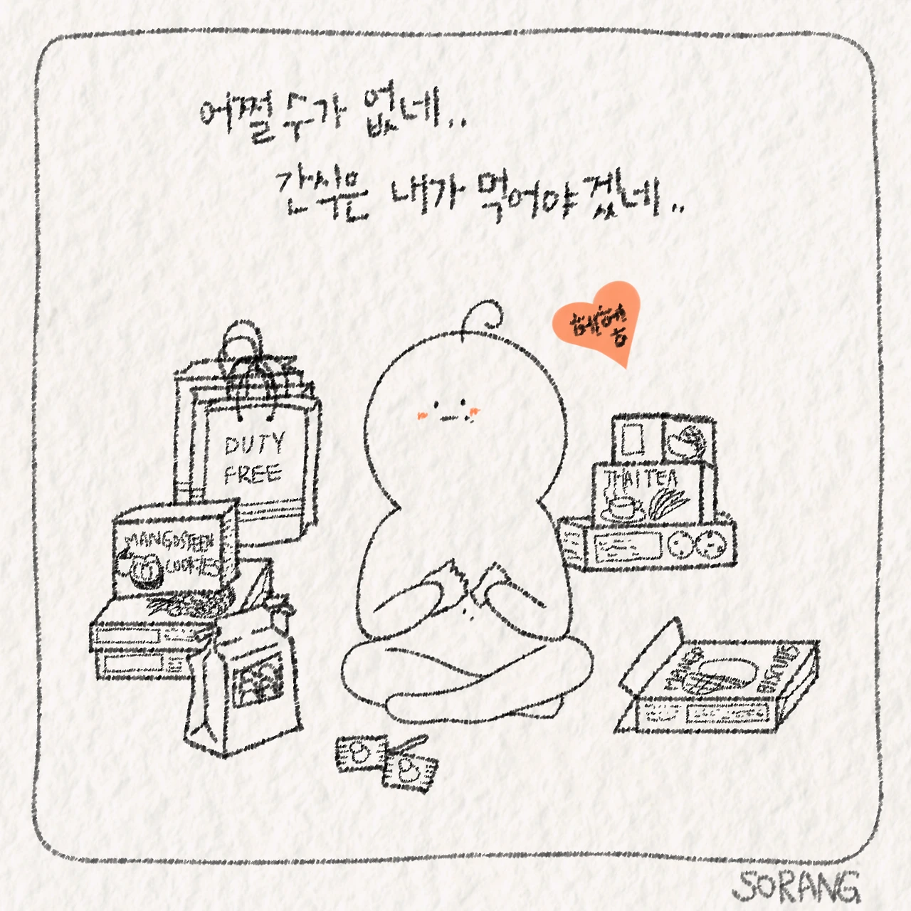 어젯밤 방콕 공항 면세점에서 수술 후 병원 선생님들이랑 나눠먹을 계획으로 한 보따리 챙겨 와 지금은 자동차 트렁크 안에 곤히 잠들어있는 간식이 생각났다. (2화 참고). 그런바보같이 순진한 상상을 했었다니. 당장 어제의 내가 너무 우습게 느껴졌다. 헤벌쭉 웃으며 점심을 먹고 엄마아빠와 사진을 찍던 세 시간 전 내 얼굴도 온데간데없이 사라져 있었다.