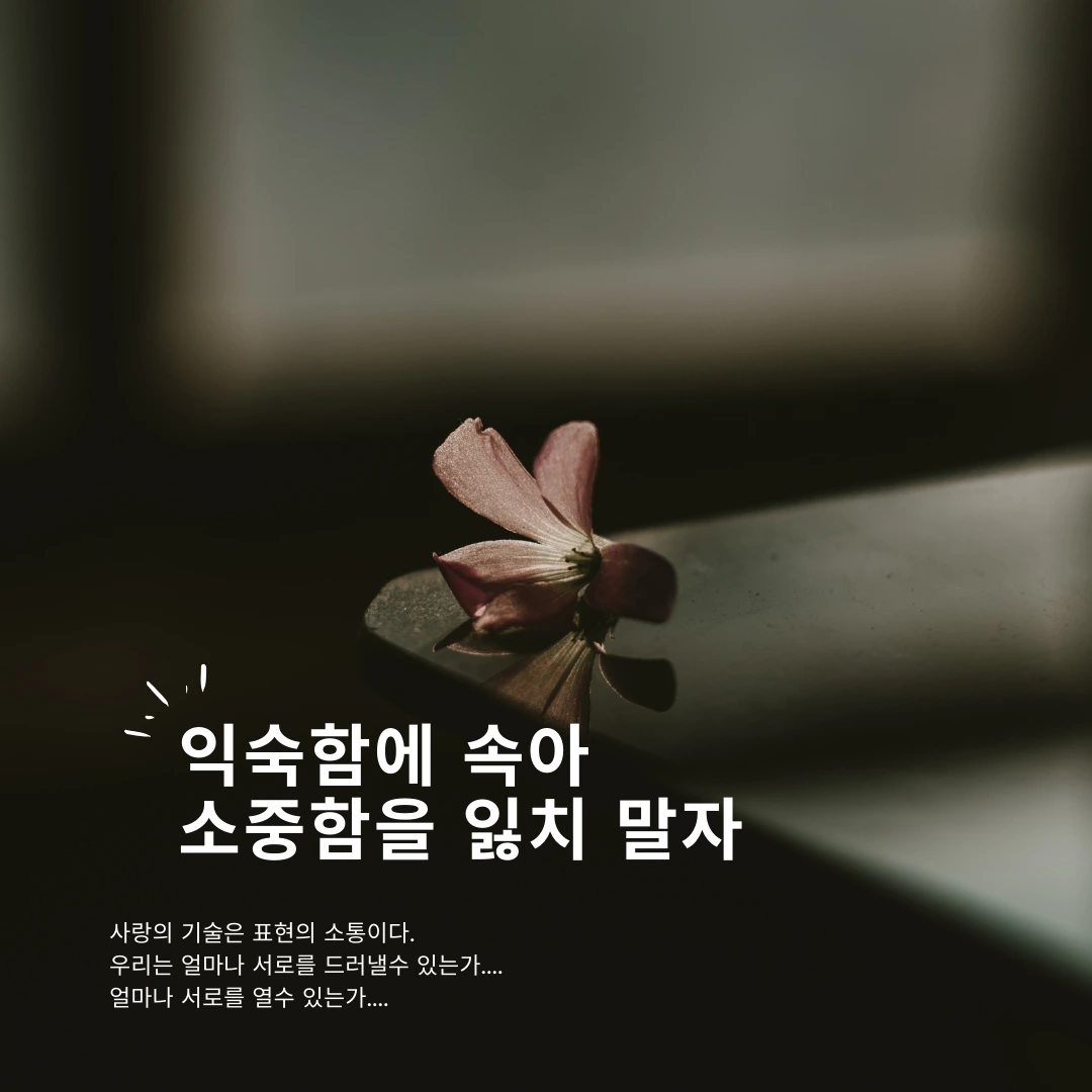 사랑을 기다리라.그러는 동안 자신을 사랑하라.좀 더 열심히 살고자신의 역량을 조금이라도 더 발전시키며멋진 사람이 되어가자.마음이 아름다운 내가 되어준비가 된 어떤 순간에야그야말로 사랑은비로소 서로를 열 수 있는진정한 상대를 나에게 보내준다.