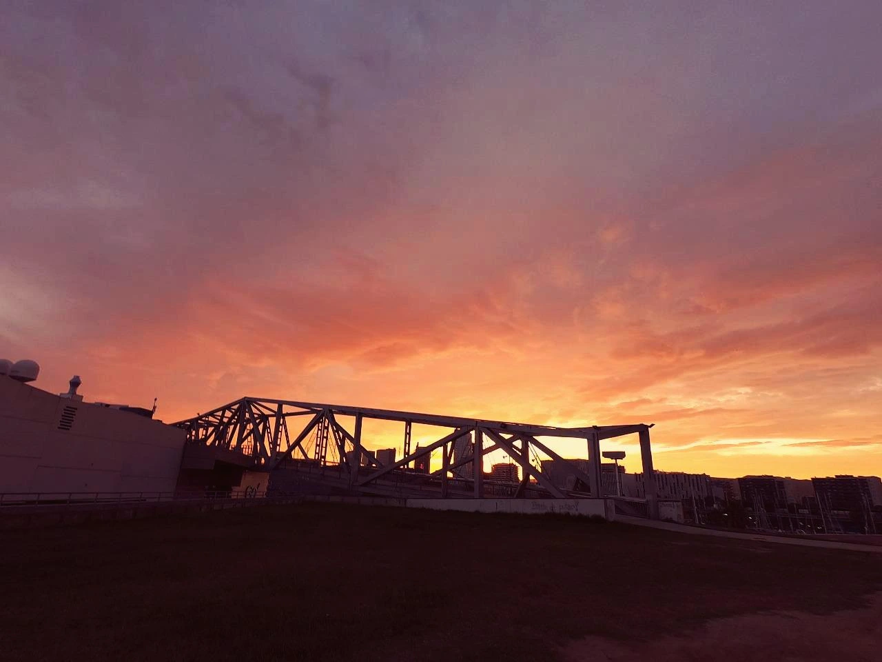 꼭 그러겠노라 대답하고 그와 헤어져 노을 지는 하늘을 향해 좀 더 걸었다. 다리 위로 올라가자 온통 오렌지빛으로 물든 하늘이 더 가깝게 보였다. 이렇게 아름다운 빛깔을 전에도 본 적이 있던가. 꿈속을 걷고 있는 것은 아닐까 볼을 꼬집어 볼 정도로 비현실적인 풍경이었다. 끝에 무엇이 있는지도 모른 채 노을만 바라보며 한없이 걸었다. 오렌지 색이었던 하늘은 어느새 핑크빛으로 또 어느새 보랏빛으로 바뀌더니 이내 깜깜해졌다. 그제야 정신이 들었다. 조금 전까지만 해도 사진 촬영하던 사람들이 몇 있었는데 아무도 없었다. 더 이상 이쪽으로 걸어가면 안 될 것 같았다. 멀리서 검은색 차가 다가오더니 내 옆을 쏜살같이 비켜갔다. '여기서 길을 잃으면 안 돼' 지도를 열고 행여 놓칠세라 폰을 손에 꽉 쥐었다.