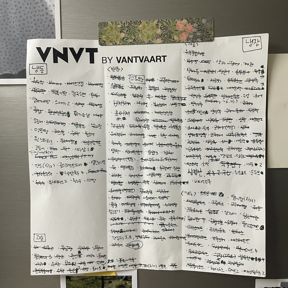 집에서나 밖에서나 음식을 남기지 않고 다 먹으려 한다. 방금 전까지는 맛있는 음식이었던 것이 남기는 순간 그대로 음식물쓰레기가 되기 때문. 음식이 내게 오기까지 이미 물, 땅, 노동, 자본, 운송, 보관 등 많은 에너지가 쓰였는데, 그걸 쓰레기로 만들어 추가적인 에너지를 또 쓰고 환경도 오염시킨다니. 그저 내가 필요한 만큼만 사거나 조리하고, 남김없이 먹어버리면 그만이다. 그럼에도 냉장고 안에서 명을 달리 한 식재료나 음식을 버려야 할 때가 있다. 특히 엄마가 해주신 반찬을 보내야 할 때는 어찌나 죄스럽던지. 그래서 생각해 낸 방법이 냉장고 안에 있는 재료들을 종이에 적어 문에 붙여두고, 모두 먹으면 리스트에서 지우는 거다. 재료 관리도 한결 수월하고, 냉장고 문을 열어 보지 않아도 요리할 메뉴를 정할 수 있어 에너지도 아끼니 꿩 먹고 알 먹는 격이다.