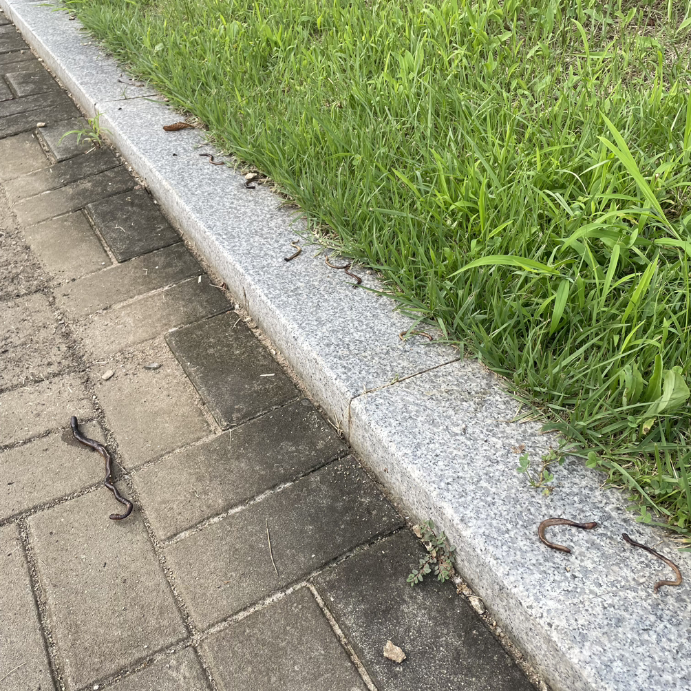 땅 위에 죽은 지렁이들이 부쩍 많이 보인다. 지난해보다도 그 수가 눈에 띄게 늘었다. 무슨 연유일까. 지렁이는 긴 몸을 쭉쭉 늘였다 당기며 일자로 앞으로 나아가는데, 그와 반대로 그들의 죽은 몸은 항상 기괴하게 뒤틀려 있다. 저 여리고 작은 몸으로 죽어가는 동안 얼마나 고통스러웠을까. 죽은 그들을 보면 아무렇지 않은 마음으로 지나갈 수 없어 나는 자꾸만 걸음을 멈춘다.