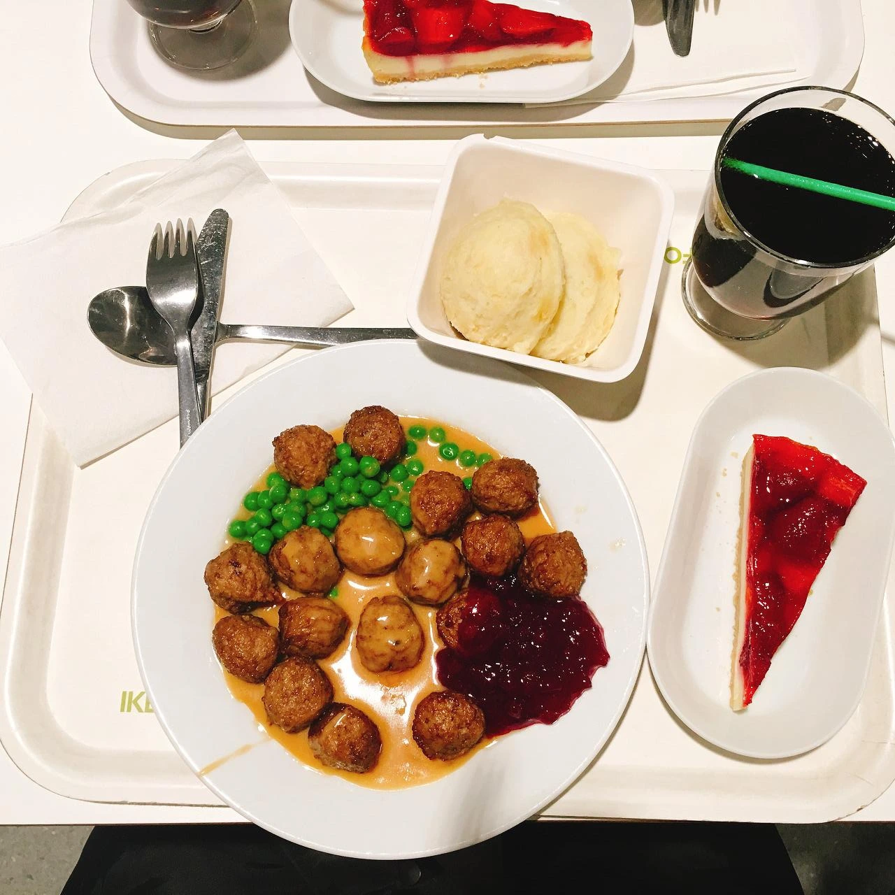 한편, 유명하다는 이케아 미트볼 또한 먹어봤는데, 미트볼을 별로 안 좋아하는 편인데도 진짜 잘 먹었다! 호불호가 갈린다고 하지만 필자는 특히 링곤베리 잼이 정말 마음에 들었다. 한국에서는 보기 어려운 링곤베리 잼은 스웨덴처럼 서늘한 지방에서 잘 자라는 링곤베리로 만들며, 스웨덴 친구 말로는 스웨디안들 사이에서는 약간 한국의 딸기잼처럼 즐겨먹는 잼이라고 한다. 미트볼은 8개, 16개 둘 중 하나로 개수를 선택할 수 있었는데, 처음의 패기를 가득 담아 16개를 선택했고 그 외에 케이크와 음료를 포함해서 한화로 약 11000원 정도 냈다.