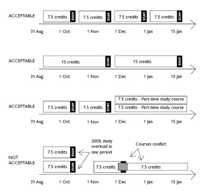 학기제인 한국과 다르게 스웨덴은 쿼터제다. 한 학기를 2 쿼터(Period)로 나누고 각 쿼터마다 해당하는 수업을 수강한다. 즉, 한국은 한 학기(약 4개월) 내내 18학점에 해당하는 과목을 모두 수강해야 한다면 스웨덴은 한 쿼터(약 1개월 반) 동안 몇몇 과목을 집중 이수한다고 보면 된다.