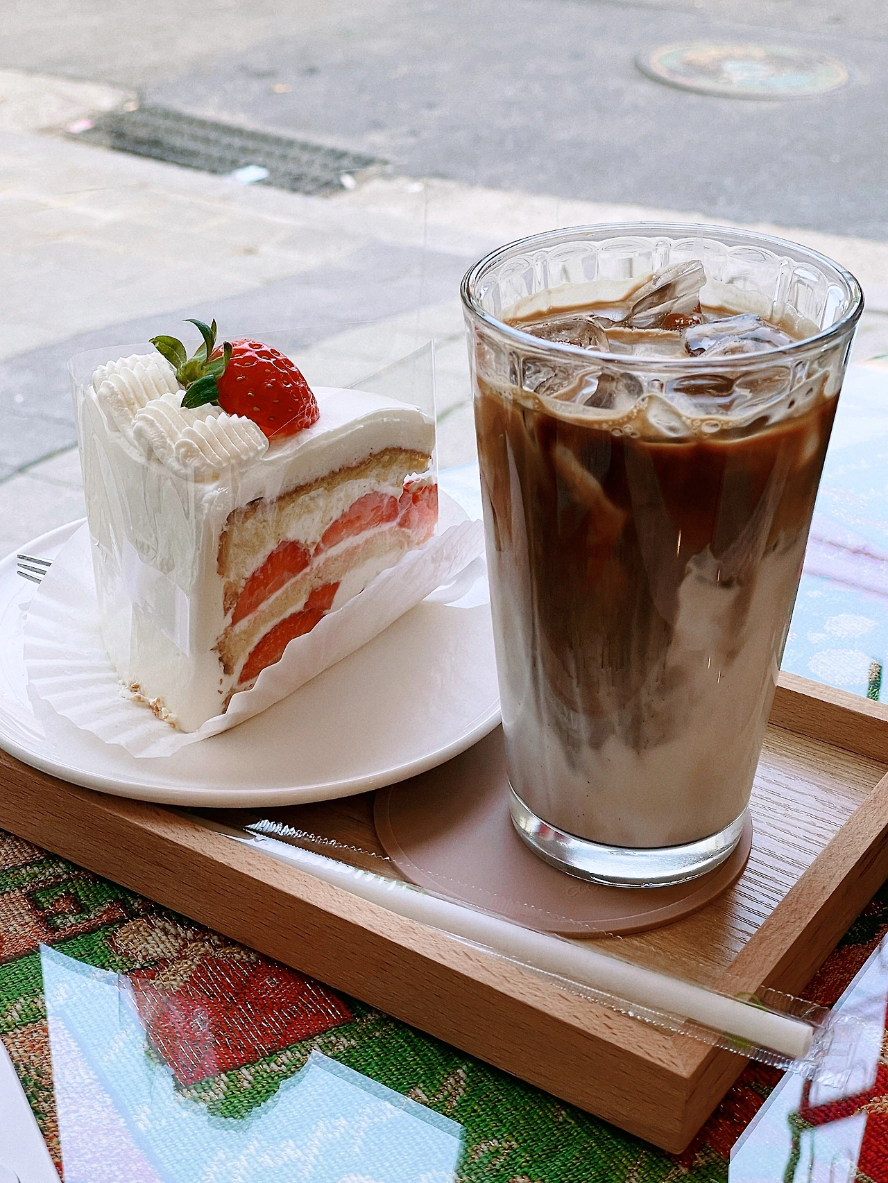 겨울이라 내가 제일 좋아하는 딸기 생크림 케이크가 나와서 매주 좋아하는 카페에 출몰하고 있다. 오늘도 어김없이 아픈 동생의 케이크 심부름(이라 하고 돈도 내가 내고…)을 한다는 핑계로 카페에 왔다. 감사하게도 사장님이 딸기 케이크 하나를 서비스로 주셨다. 저번에 동생과 같이 왔을 때도 한번 주신 적이 있는데 이렇게 또 주시면 너무 감사하게 잘 먹겠습니다! 친절하고 상냥하신 사장님을 위해서라도 더 열심히 케이크를 사 먹어야겠다.