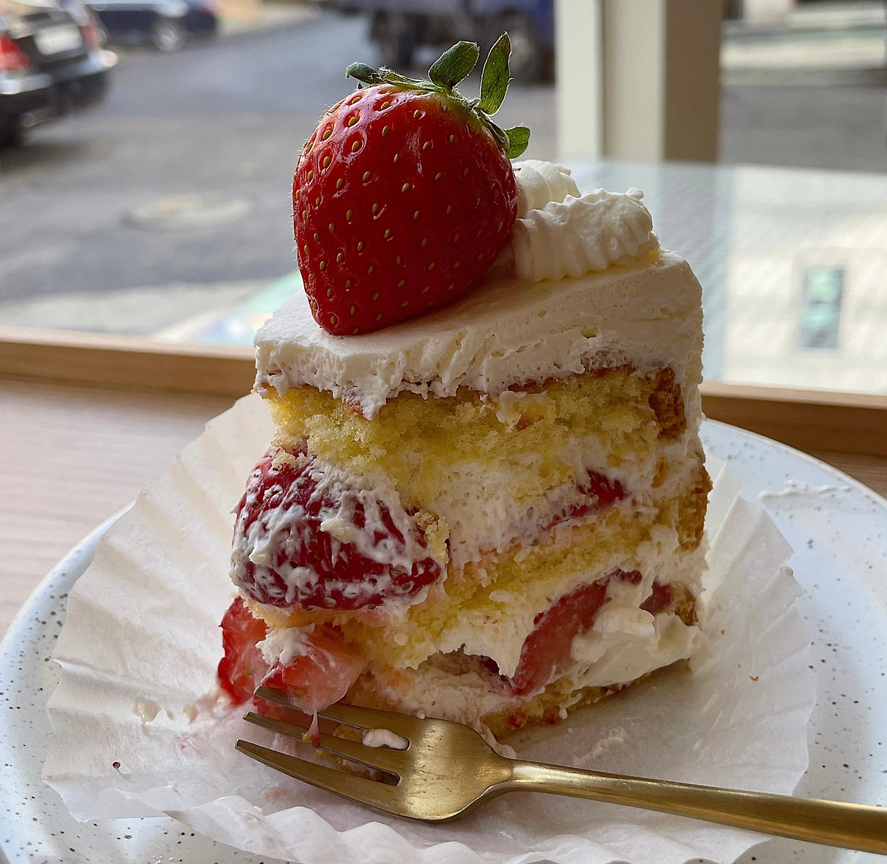 요즘 필자의 주말을 책임지는 3가지를 뽑으라면, 바로 고영이, 커피, 딸기생크림케이크를 뽑을 것이다. 요즘은 심심하다고 생각될 때면 고영이를 붙잡거나, 카페라떼를 만들어먹거나, 케이크를 먹으러 나간다. 오늘도 언어교환이 끝나갈 즈음, 이거 끝나고 뭘 할 거냐는 물음에 아마 케이크 먹으러 나갈 것 같다고 대답했는데, 결국 고민 끝에 진짜 먹으러 나왔다. 먹으면서 이참에 베이커리 학원을 다녀볼까 생각이 들긴 했는데, 우선 미래의 나에게 맡기며… 당장은 남은 주말을 늘어지게 보내야겠다.