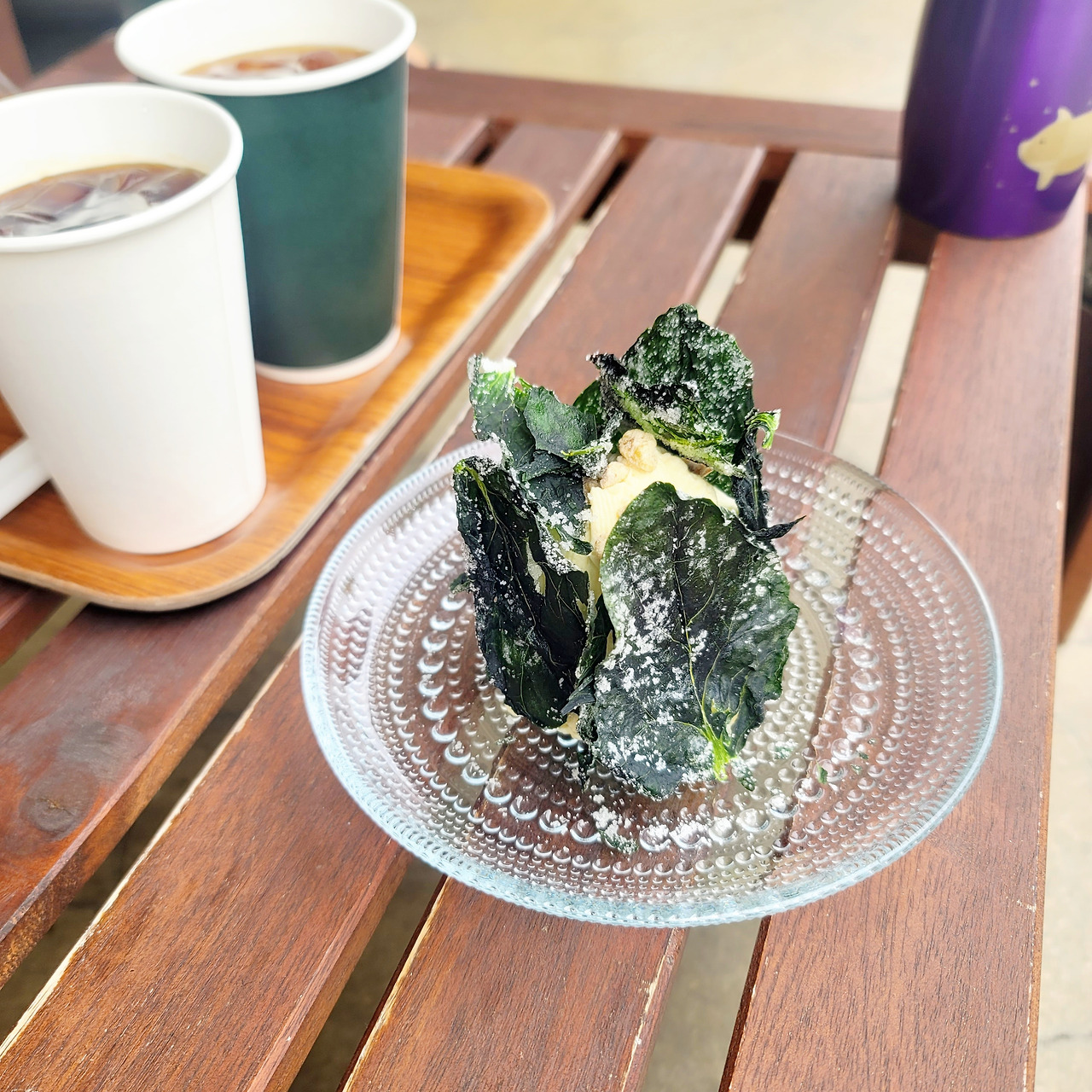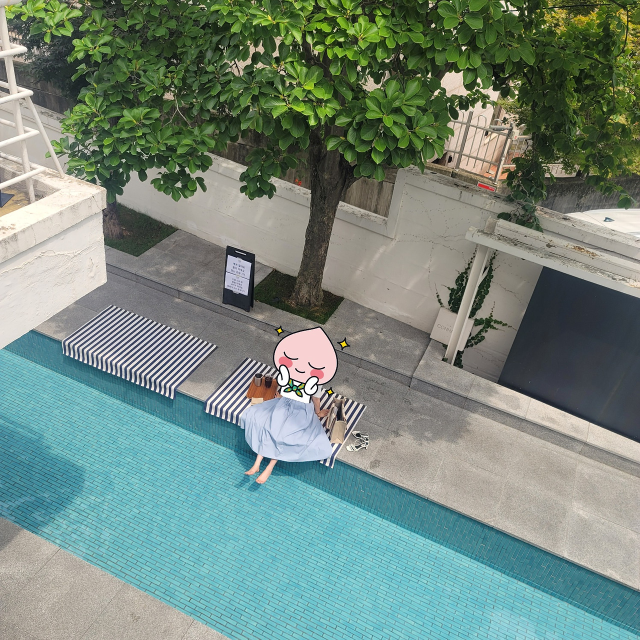들어서자 웬 풀장에 물이 30센티도 없으면서 족욕을 하라는 건가 의아했다. 2층으로 올라간 우리는 금세 알아차렸다. 이곳은 사진 핫플레이스구나 감이 딱 왔고 실내의 시끄러움을 견디지 못할 거 같아서 2층 테라스에 자리를 잡았다. 한 여름의 뜨거움 보다 소음을 견디지 못할 거라며 자리 잡았는데 생각보다 선선한 바람이 불어와 줬고 커피와 쑥시금치케이크도 신기한 조합이라며 먹었다. 사람들이 들락날락 우리 앞에 자꾸 줄을 서고 파노라마 셔터 소리가 촤라라라 촤라라라 오 마이갓!!! 이 사람 저 사람 궁둥이를 몇 시간이나 감상했다. 그들은 우리 시선 따위 신경 쓰지 않고 열심히 사진을 건져 올랐다. 그려~ 찍어 남는 건 사진이다 청춘들 아니던가 등짝이 훌러덩 예전 갔았으면 꼴불견 아냐 했을 텐데 있는 그대로 젊음이 좋았다.