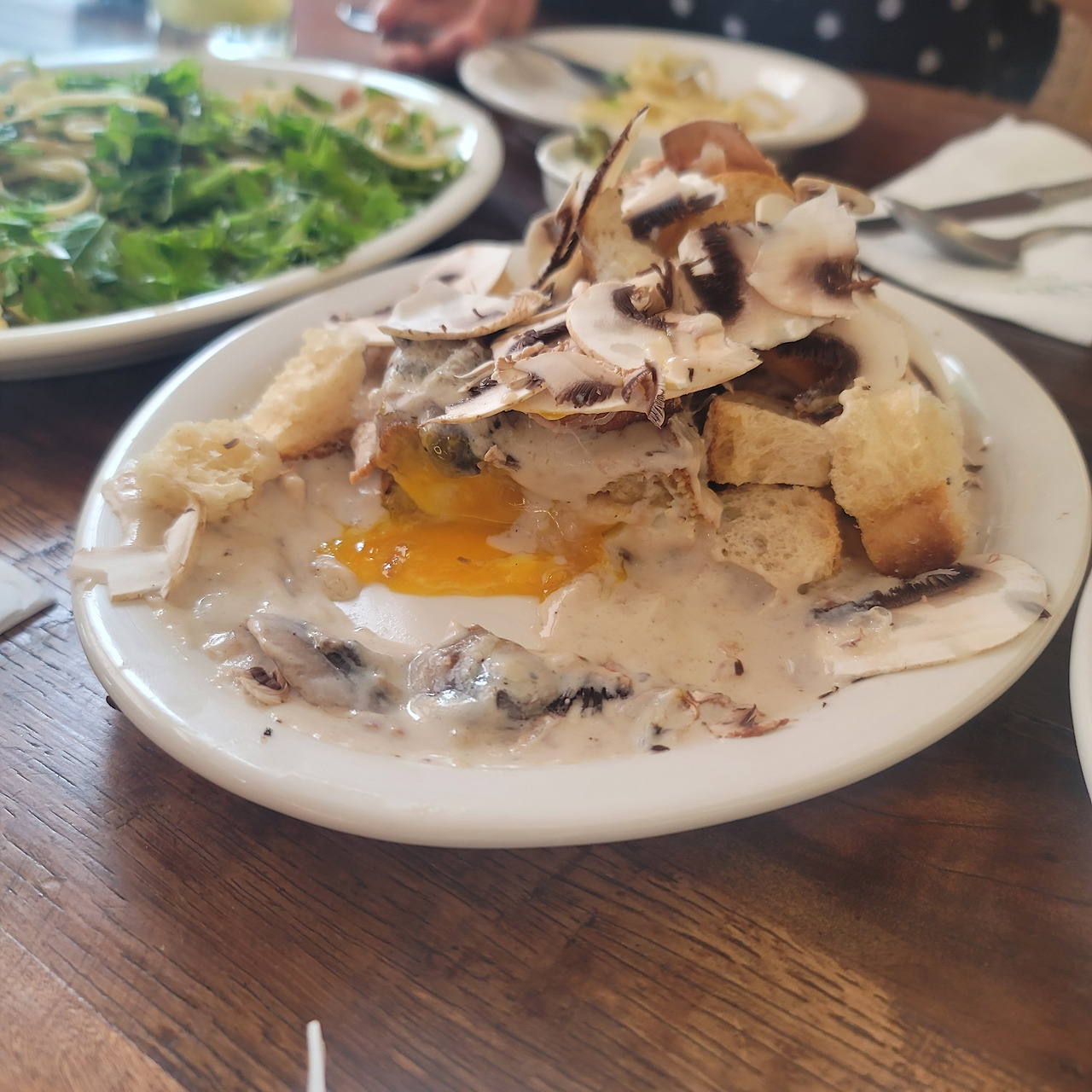 뺑뒤프는 한국식으로 계란빵이다. 양송이와 크림수프 부드러움에 계란빵 조화라 우리는 하하하 뭐야 이게 MZ감성이냐며 웃었는데 맛은 웃을 일이 아니다. 알고 있는 그 크림맛이 아니라 더 진하고 뺑뒤프를 컷팅하자 노른자가 촤르르 흘러나왔다. 정말 부드러워서 자꾸 손이 갔다. 만족스러운 브런치를 끝내고 두 번째 핫 플레이스로 커피를 마시러 가기로 했다.