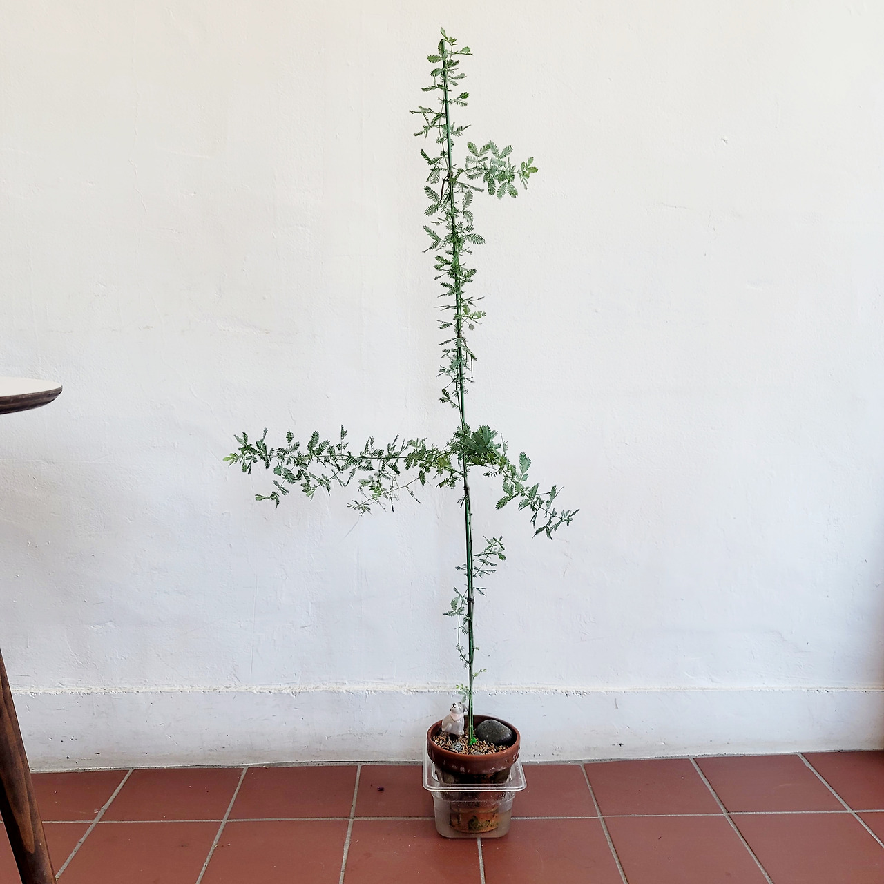 보는 사람마다 미모사라고 정답처럼 외치지만 이름은 은엽 아카시아이다. 작은 입들이 모여서 잔잔하게 크는데 만지면 아기 손처럼 야들야들하고 햇빛을 많이 받으면 보랏빛으로 변하기도 한다. 그것은 자엽 아카시아다. 잘 키워낸다면 노란색 올망졸망한 불꽃 모양 꽃들이 주렁주렁 열려 환희라는 표현이 딱이다. 환희를 느껴보지 못하고 코로키아 다음 해 여름 그렇게 또 한놈이 강을 건나갔다. 매년 여름이면 하나씩 죽음의 저승사자가 나타나 어떤 놈을 잡아먹을까 기다리고 있는 거 같았다. 매년 식물들이 죽어나갔고 4년째가 되니 여름이 두려웠다. 휴가만 가면 식물이 하나씩 죽고 작년에 죽인 유칼립투스는 정말 애지중지 키운 게 억울했다.