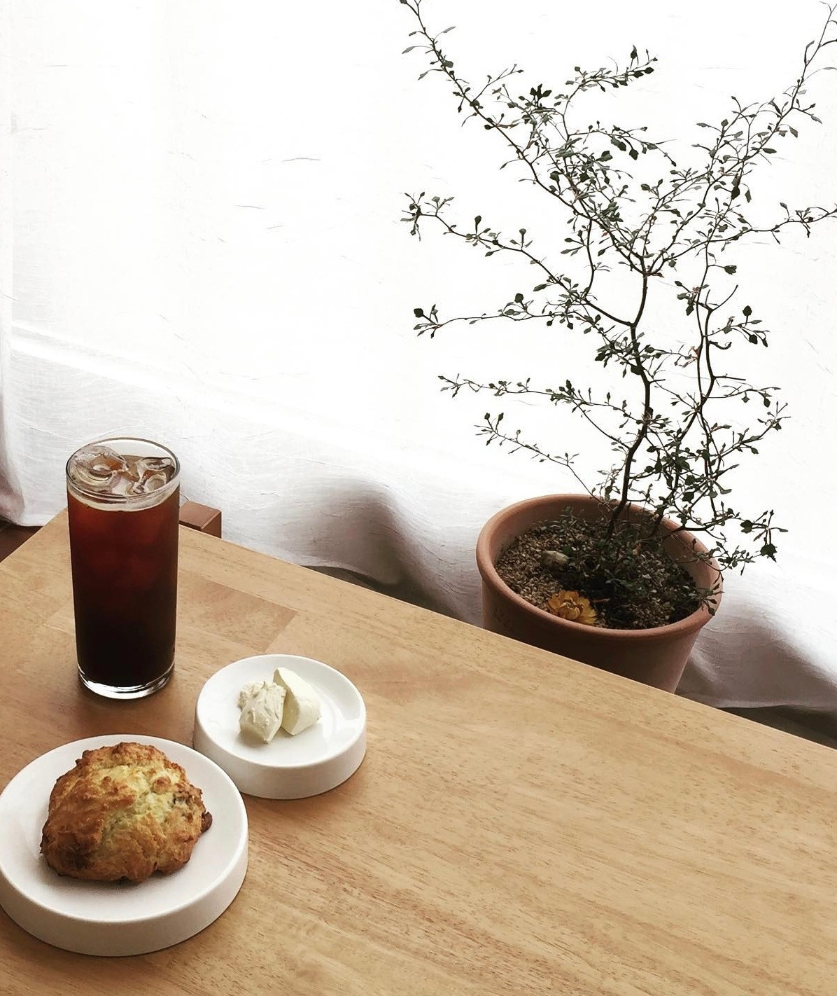 초록잎이 앞면 뒷면이 은빛인 코르키아는 키우기가 까다롭기로 유명하지만 오묘한 색감과 자태 덕분에 그만큼 매력적이다. 가지가 얼마나 얇은지 정말 만지면 똑 부르 질 것 같고 잎도 작고 얇다. 감을 먹고 씨앗을 갈랐을 때 하얀 숟가락이 나오는 그 모양이 딱 저 모양이다. 한 폭에 동양화처럼 식물에 선이 보여 매력이 넘치지만 섣불리 키우라고 권하는 식물은 아니다.