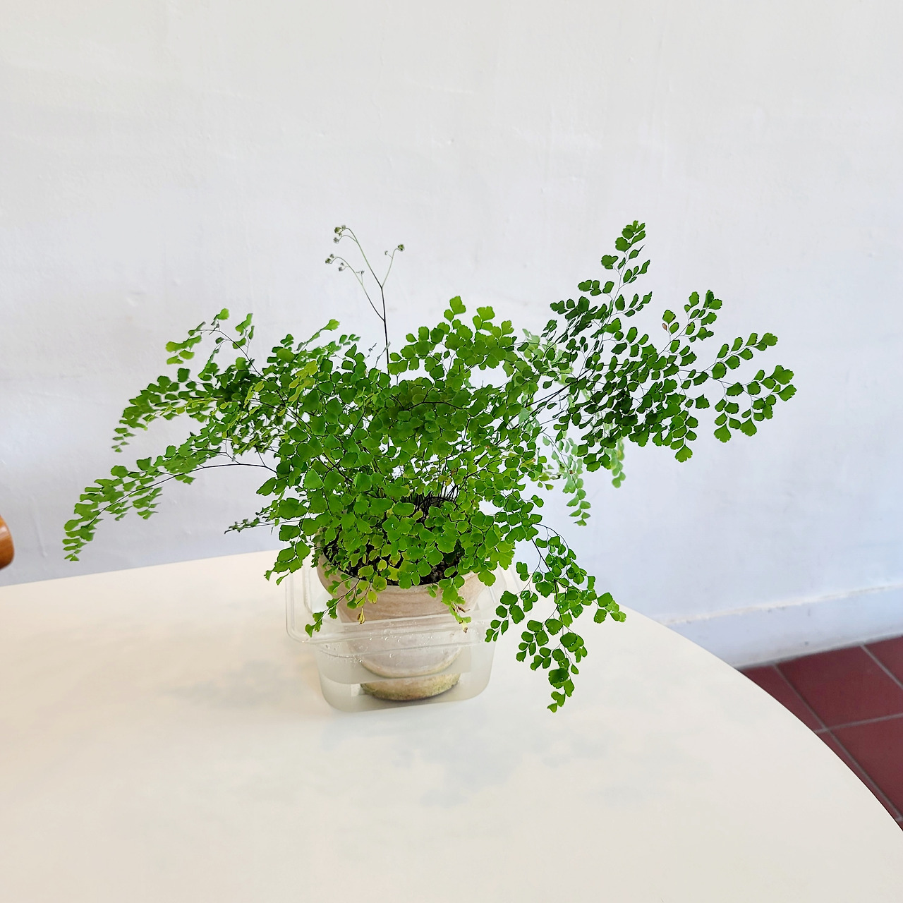 올여름휴가기간에 살아남았다. 작은 은행잎 같은 모양에 입을 만지면 촉감이 차가우며 기분이 좋다. 고사리란 이름에 걸맞게 대가 올라올 때면 말려 나오고 쭉 뻗어 올라 펼쳐진다.