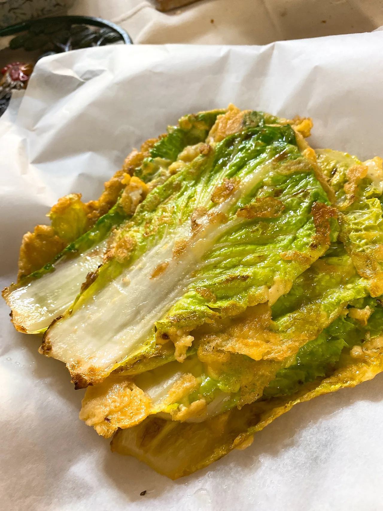 김장 무렵엔 뻣뻣하게 남은 배추 겉잎으로 전을 부친다. 전라도와 충청도에서 많이 먹는데, 이렇게 쉬울 수가 없다. 부침가루, 찬물, 계란 하나를 넣고 묽고 걸쭉해질 때까지 섞는다. 생배추를 푹 담갔다가 빼서 기름이 차르르- 한 팬에 노릇하게 부쳐낸다.