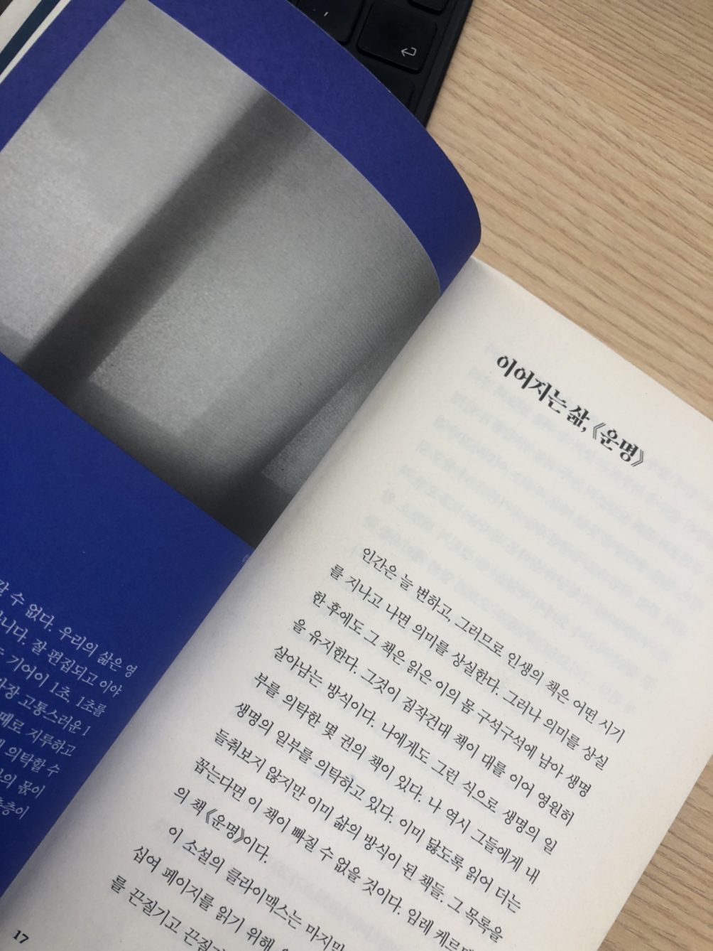 운명에 대해 생각하기. 첫 번째 노트를 읽은 다음에 돌진한 장소가 ‘운명’이라니, 내가 왜 이 책을 오래 읽어야 한다고 했는지 사람들이 알아줬으면 좋겠다.