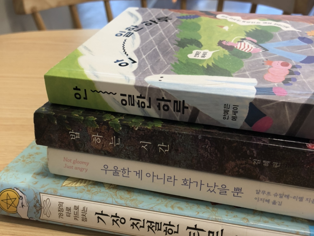 금요일부터 토요일까지 생일맞이 파티로 밤을 꼴딱 새운 덕분에 오늘은 일요일에 도서관에 왔다. 어제는 날씨가 좋더니 하필 비가 오고 있다. 날은 흐리고 밖은 추운데 실내는 덥다. 카페에서 책 한 권 읽기 딱 좋은 날씨다.