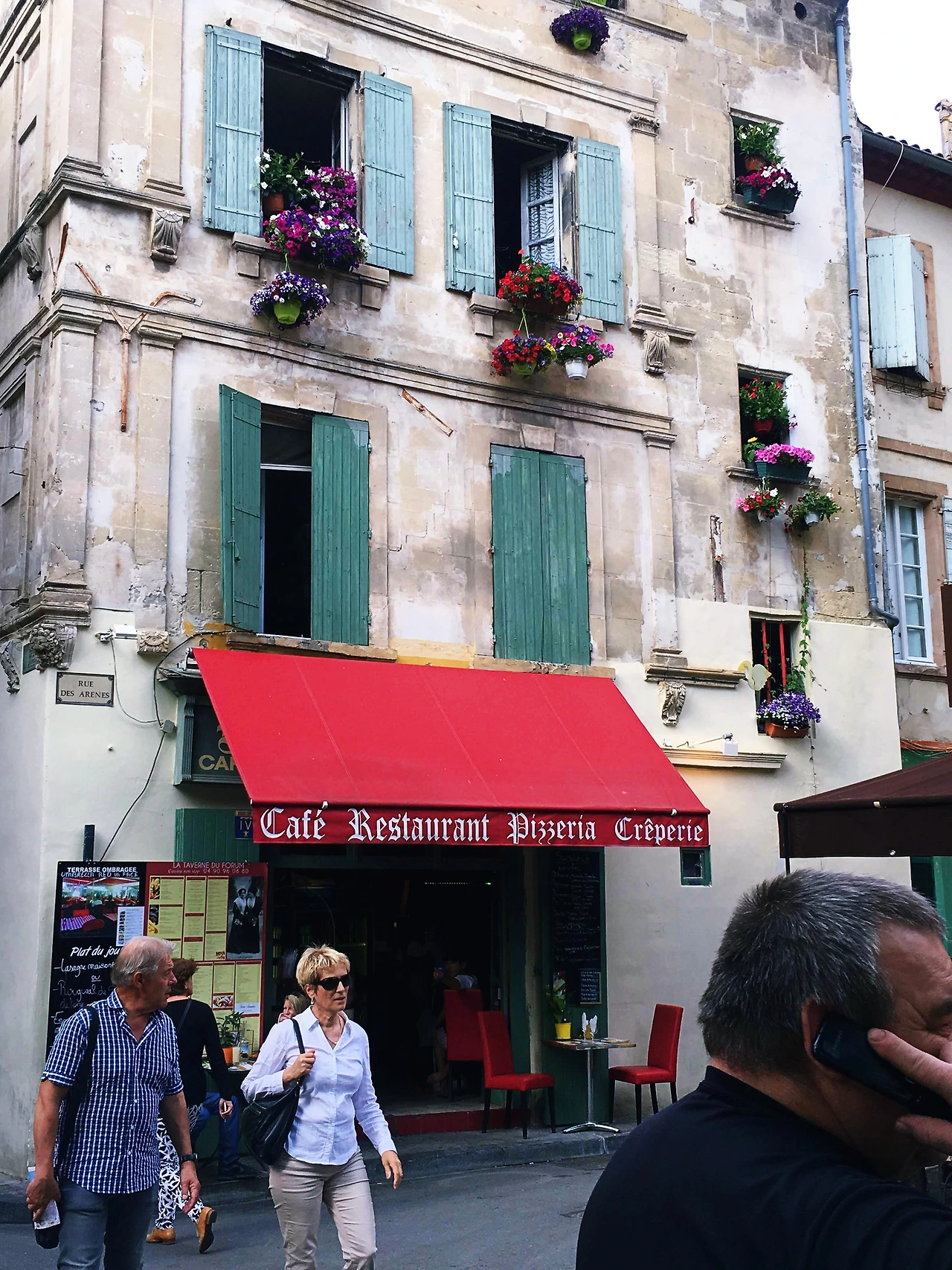 고개를 푹 숙이고 돌바닥을 보며 걷는데 어디선가 한국말이 들렸다. 어떤 남자가 ‘카페테라스’가 그려질 당시의 배경을 설명하고 있었다. 솔깃 귀가 열렸다. 원래 그 시절 반 고흐는 동생 테오가 주는 돈으로 생활하던 가난한 시절이라 저런 카페에 자주 갈 수 있었던 형편은 아니었다고. 아마도 저 집 창문(화분이 걸려있는 3층 방)에서 밤마다 화려한 조명 아래에 사람들이 모여 식사를 하고 와인을 마시는 모습을 지켜보다가 화폭에 담았을 거라고. 흥미로웠고 그럴듯하게 들렸다. 그의 설명이 끝나길 기다렸다가 혹시, 근처에 저렴한 호스텔이 있는지 소개해 줄 수 있냐고 물었다. 가이드들은 숙소에 대한 정보도 갖고 있을 거라고 생각했으니까. 그 남자는 일단 투어를 끝내고 식사하러 가는 중이니 1시간쯤 후에 다시 만나면 어떠냐고 물었고 나는 알겠다고 답했다.