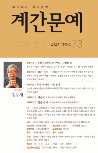 계간문예 72호(23. 여름호)에 수록된 시편들은 지난여름을 한층 풍성하게 해주었다. 이제 인류를 공포와 절망의 늪에 빠뜨렸던 팬데믹의 끝자락에 와있다. 다시 마음을 열고 희망을 영접하는 시간, 문학은 웅크렸던 영혼의 눈을 뜨게 하는 도화선이 어닌가?