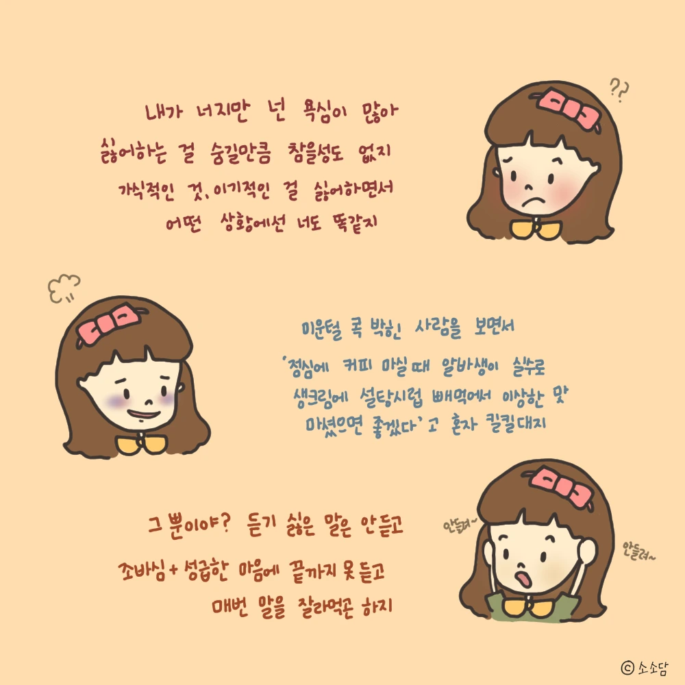 속으로는 별의별 생각을 다 하는 나,