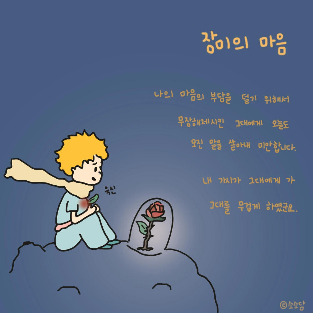 장미는 늘 보채고 토라지고 어린 왕자의 힘듦은 이해하지 못해.
