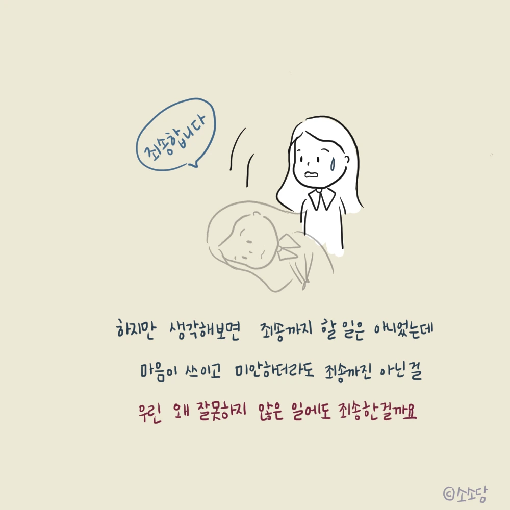 혹은 죄송할 것까진 않아도 되었던 일들에 마음을 써가며, 다른 이들에게 상처를 입힐까 스스로에게 상처를 주게 되는 걸까요.