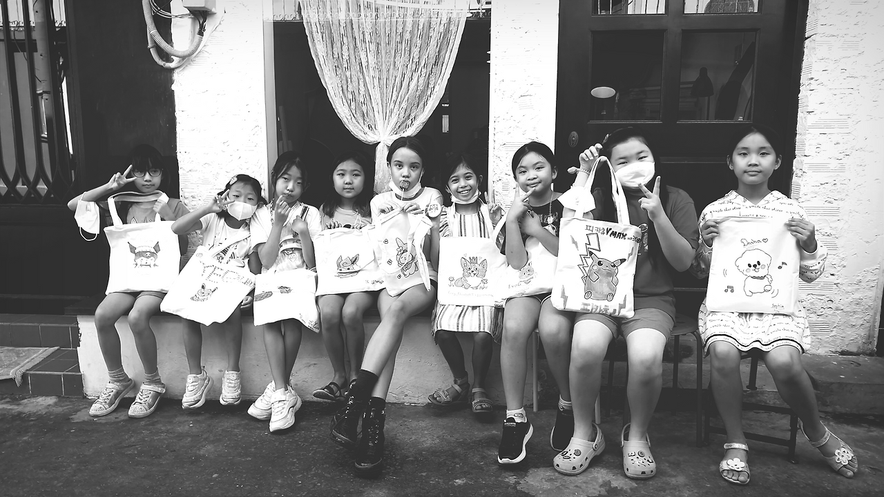 2부는 주말 수업 중간 쉬는 시간에 미술쌤의 도움을 받아 에코백에 그림 그리는 수업을 하기로 했다. 한국에서 비행기로 받은 보석 십자수 빗 만들기 키트도 선물로 주고, 직접 만들어서 가져가기로 했다.