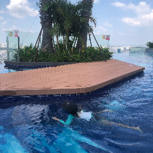 아이는 7살 때 수영을 배우기 시작했다. 국제학교에서 수영을 가르치는 베트남 선생님께 나의 강습도 30분 부탁드렸다. 맙소사, 작은 볼풀공을 주고는 키판처럼 잡고 수영을 하란다. 한 번 팔을 휘저을 때마다 내 무게를 견디지 못한 볼풀공이 물속으로 오르락내리락했다. 내 몸도 잠수인지 수영인지 모를 모양새가 됐다.