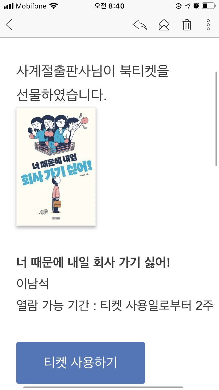 SNS에서 이 책 제목을 보고는 이벤트 응모를 하지 않을 수 없었다. 통쾌한 제목은 정말 누군가에게 해주고 싶었던 말이었기에 읽고 싶었다. 그 마음이 전해졌는지, 아니면 생각보다 이벤트 응모한 사람이 적었는지, 이벤트에 당첨되어 전자책을 받았다.