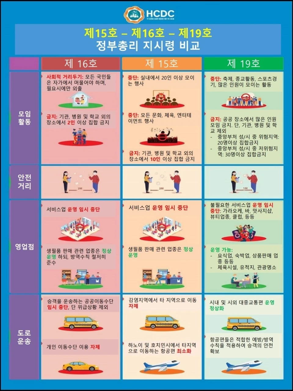 다음 주부터는 더 강력한 사회적거리두기를 시행한단다. 지금은 15호. 다음 주부터는 16호. 지금은 자동차 택시 운행을 했지만, 16호가 지시되면 오토바이 택시만 운행 가능하고, 5인 이상 집합 금지였던 모임은 3인 이상 모임 금지로 바뀐다.