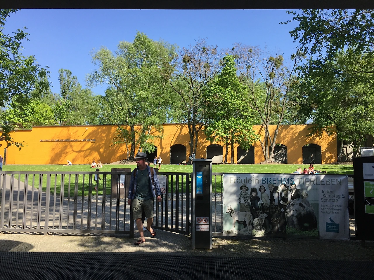 자전거를 타고 달려 도착해 보니, S반 Priesterweg 역을 통해 입구에 들어갈 수 있었다. 역 앞에 자전거를 메어놓고 역사 안으로 들어갔다. 다른 공원과 달리 입장권을 구입해야 했다. 아래 사진에 보이는 입구 앞 자판기에 1유로를 투입하여 티켓을 구입할 수 있었다. 안내원에게 표를 보여주고 나서야 공원에 입장할 수 있었다.