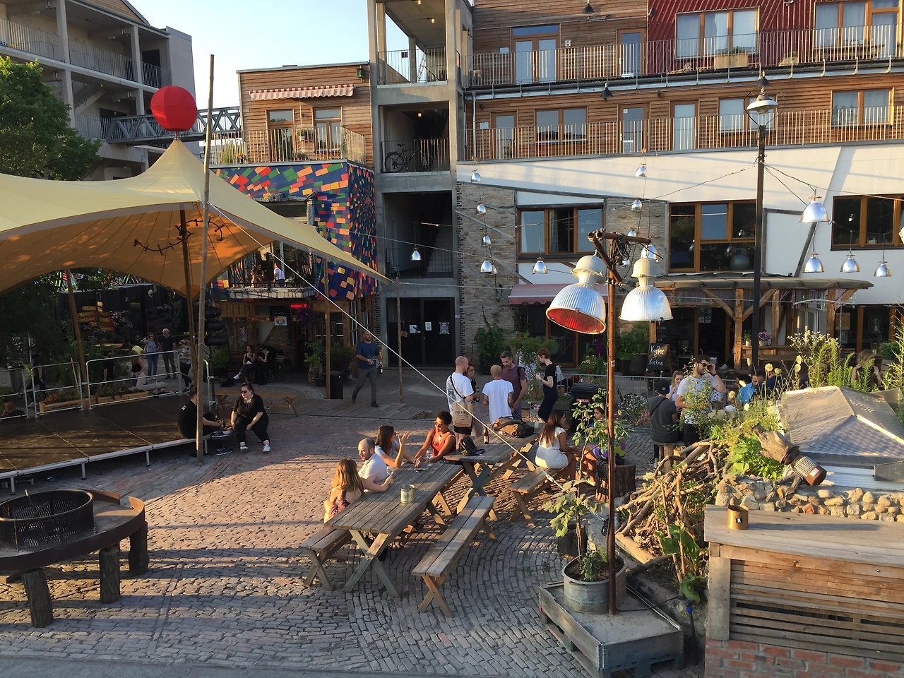 이 곳을 사랑하는 사람들이 의견을 내어, 상업적 기능뿐 아니라 아이 보육실, 도시농장, 문화프로그램 등이 복합된 공간을 조성하였으며, 디자인 단계에도 참여하여 개성강한, 독특한 건물과 공간이 탄생하게 되었다. 각자 튀면서도 전체적인 균형은 잘 맞는 느낌이었다. (참여한 건축가와 도시계획가의 중재/조정 역할을 잘 한듯) 또한 오픈스페이스의 조경은 전문인력이 아니라 매장주인으로 보이는 사람들이 관리하고 있었고, 많은 부분은 지역주민들의 도시농장으로 이용될 예정이었다. 개발부터 설계, 관리운영까지 계속 함께 가꾸어 나가는 공간. 덕분에 이 곳은 끊임없이 자기만의 정체성을 만들고 변화시켜 나갈 수 있을 것이다.