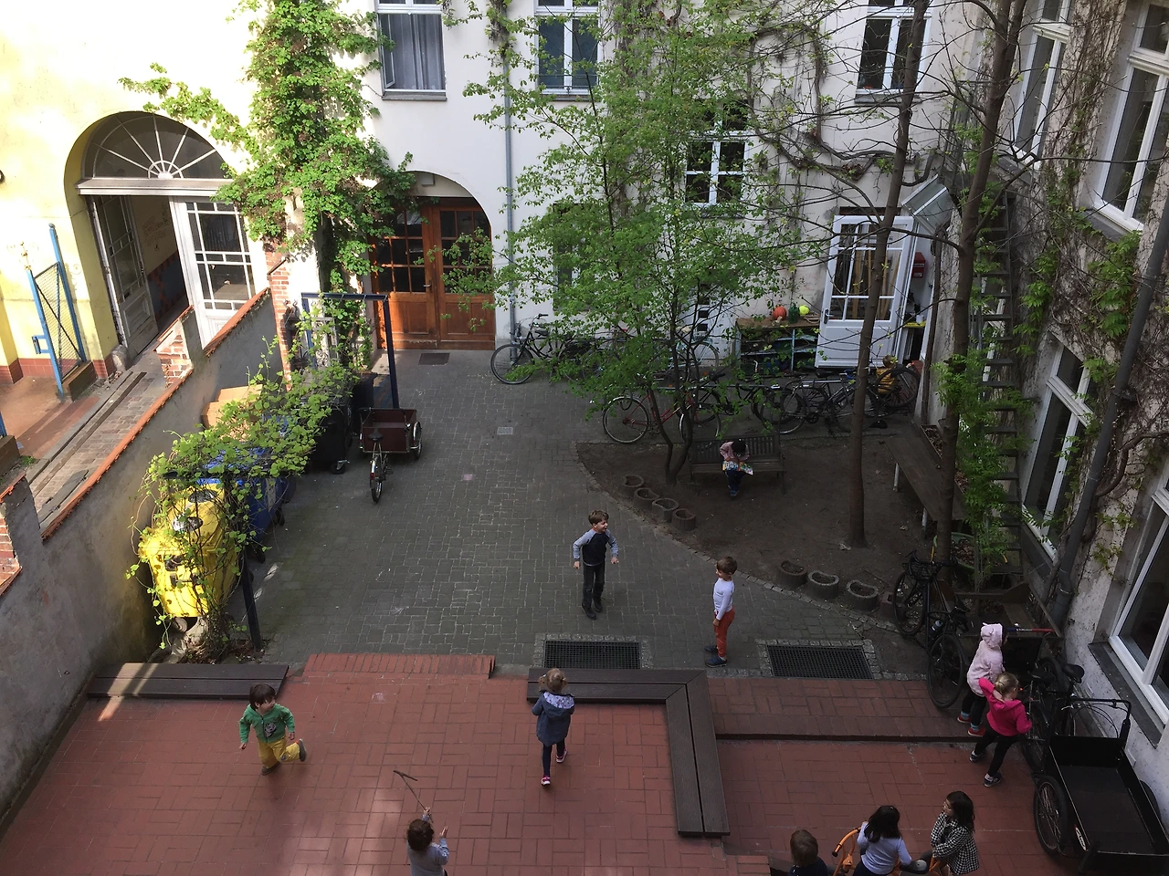 아마도 1층에 유치원이 있는 것 같았다. 여느 다른 건축물처럼 이 곳도 저층은 비주거용도로, 고층은 주거로 이용되고 있다. 독일 도심지에는 이런 복합건축물이 많다. 하나의 용도로 정해져 있지 않고 변화가능한 건물. 예를 들어 이 지역에 갑자기 상업업무 수요가 늘어나면 주거였던 공간이 오피스나 상가로 이용되고, 다시 비주거가 줄어들고 주거수요가 늘어나면 오피스였던 공간은 다시 주거공간으로 바뀐다. 그때그때 변화하는 도시의 여건에 대응할 수 있는 복합용도(Mixed-use)의 건물이다. 말하자면 '도시형 건축'이다.