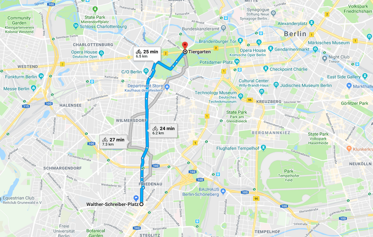 그 여정은 집에서 나와 공용 자전거차고에서 자전거를 꺼내면서부터 시작된다. 자전거를 타고 북쪽으로 25분만 올라가면 베를린을 대표하는 도시공원 티어가르텐에 도착할 수 있다.