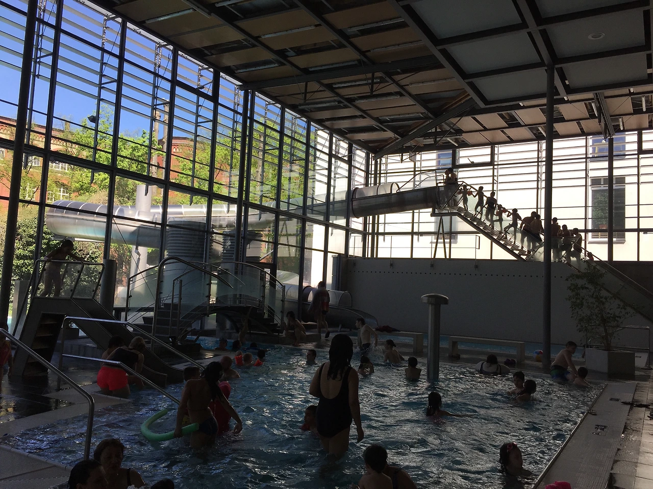 수영장 건물에 들어가 바로 티켓팅을 했다. 하루 이용권이 10유로였다. 아마 시간이 정해져 있는 이용권은 7유로 정도였던 것 같다. (고양시 수영장이 4천 원이었던 기억이 나, 시립시설 치고는 비싸다는 생각이 들었다.)