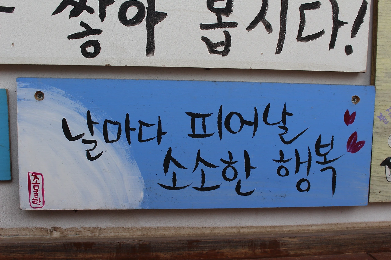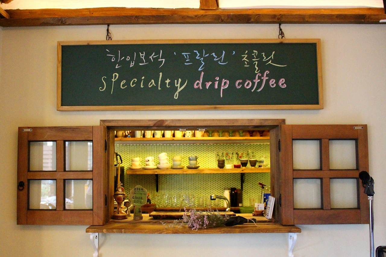 이 찻집은 주인 내외 두 분께서 직접 건축물을 짓고, 인테리어를 하고, 메뉴를 개발해서 그런지, 그 어느 찻집보다 독특했다. 찻집의 안쪽에 들어서면 낙서를 할 수 있는 벽이 나타난다. 그곳에 형형색색의 크레용이 놓여 있었다. 크레용을 집어 들고 벽에 낙서를 하고 있으니 내가 마치 어린아이가 된 기분이다.
