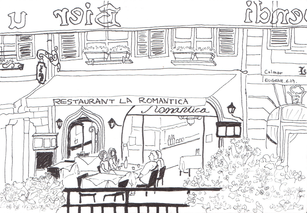 이렇게 해서 탄생한 두 번째 여행지 그림 Colmar의 카페 풍경.