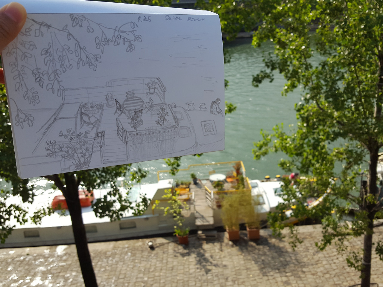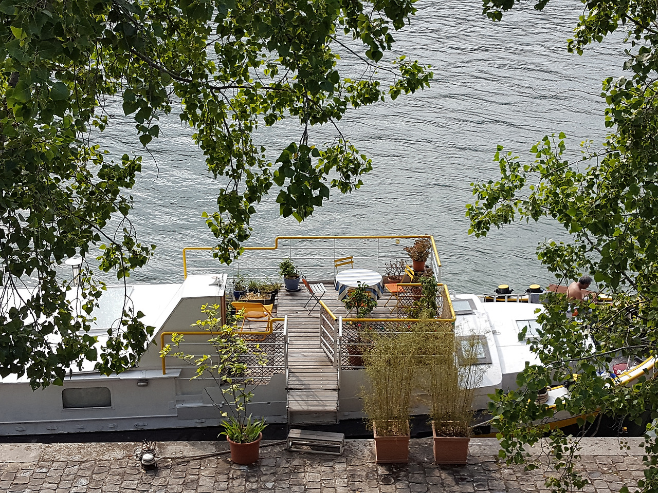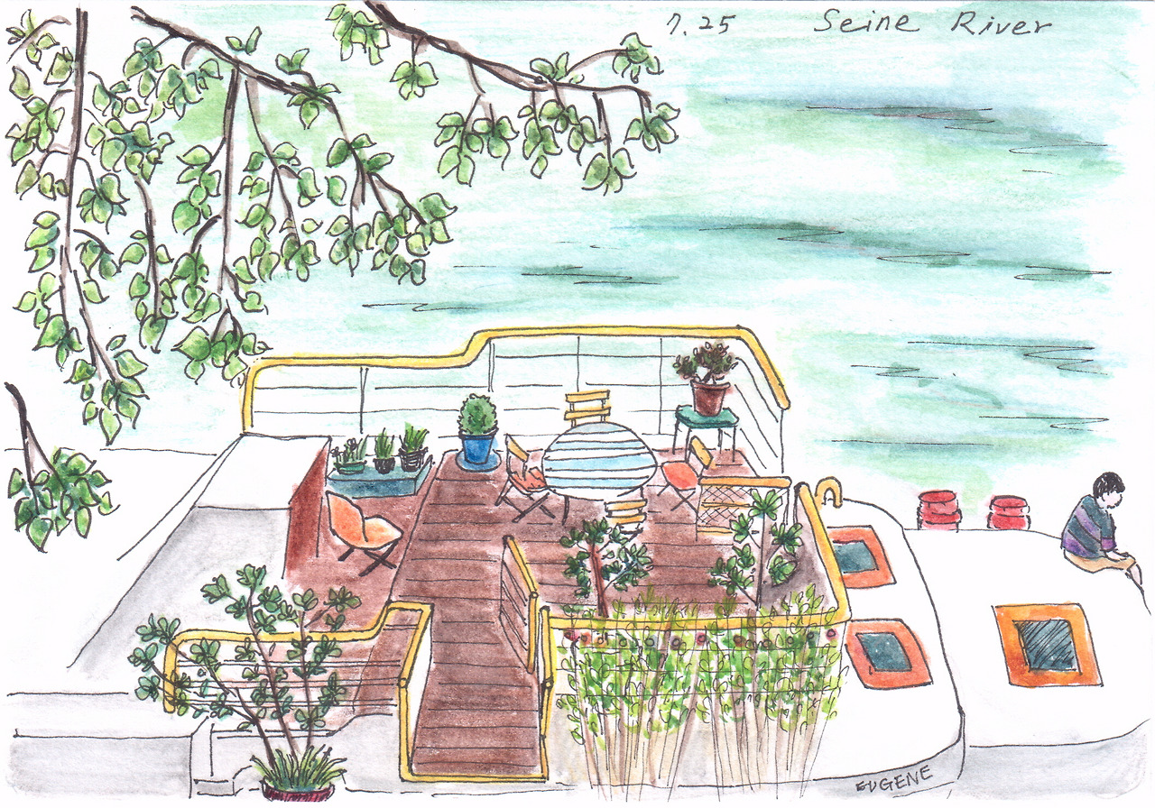한 바탕 소나기를 잠시 피해 Trocadero역에서 잠시 기다렸다가 나와, 센강변을 걸어보기로 했다. 미드나잇 인 파리에서 처럼 차분히 파리를 돌아다니고 싶었는데, 드디어 하게 된 것이다. 센 강을 따라 걸으니 배를 집처럼 꾸며 놓은 곳이 꽤 많았다. 알록달록 예쁜 그 공간들을 그냥 지나칠 수 없었다.