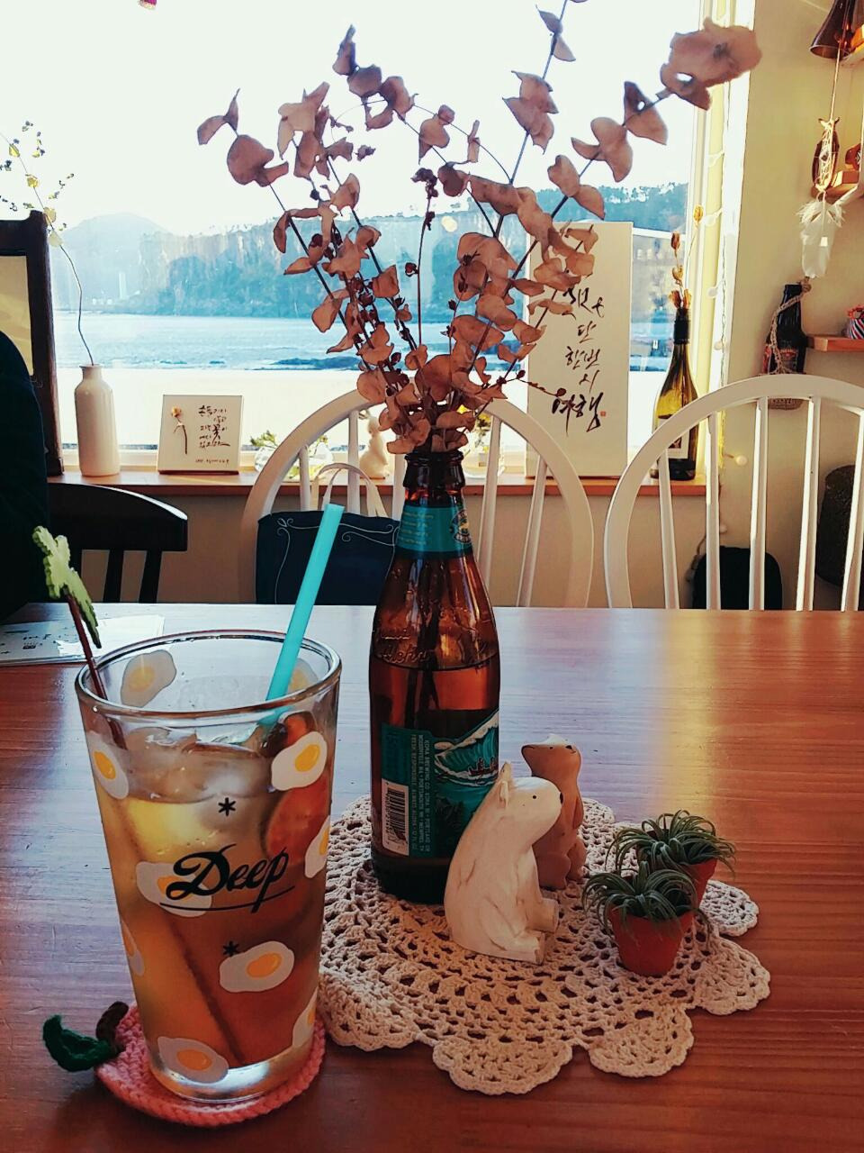 이곳에서 꽤나 오랜 시간 동안 앉아서 바다를 바라보고 수다 떨고 사진을 찍었다. 누군가가 들으면 답답한 여행일지도 모르겠다. 이틀밖에 머물지 않는 곳에서 카페에 앉아 수다라니. 그렇지만 우리는 이 순간이 정말 행복했다. 어쩌면 바다라는 아름다운 풍경이 함께 했기 때문인지 모르겠다. 그리고 돌담이 예쁜 이 카페의 분위기 때문일 수도 있다.