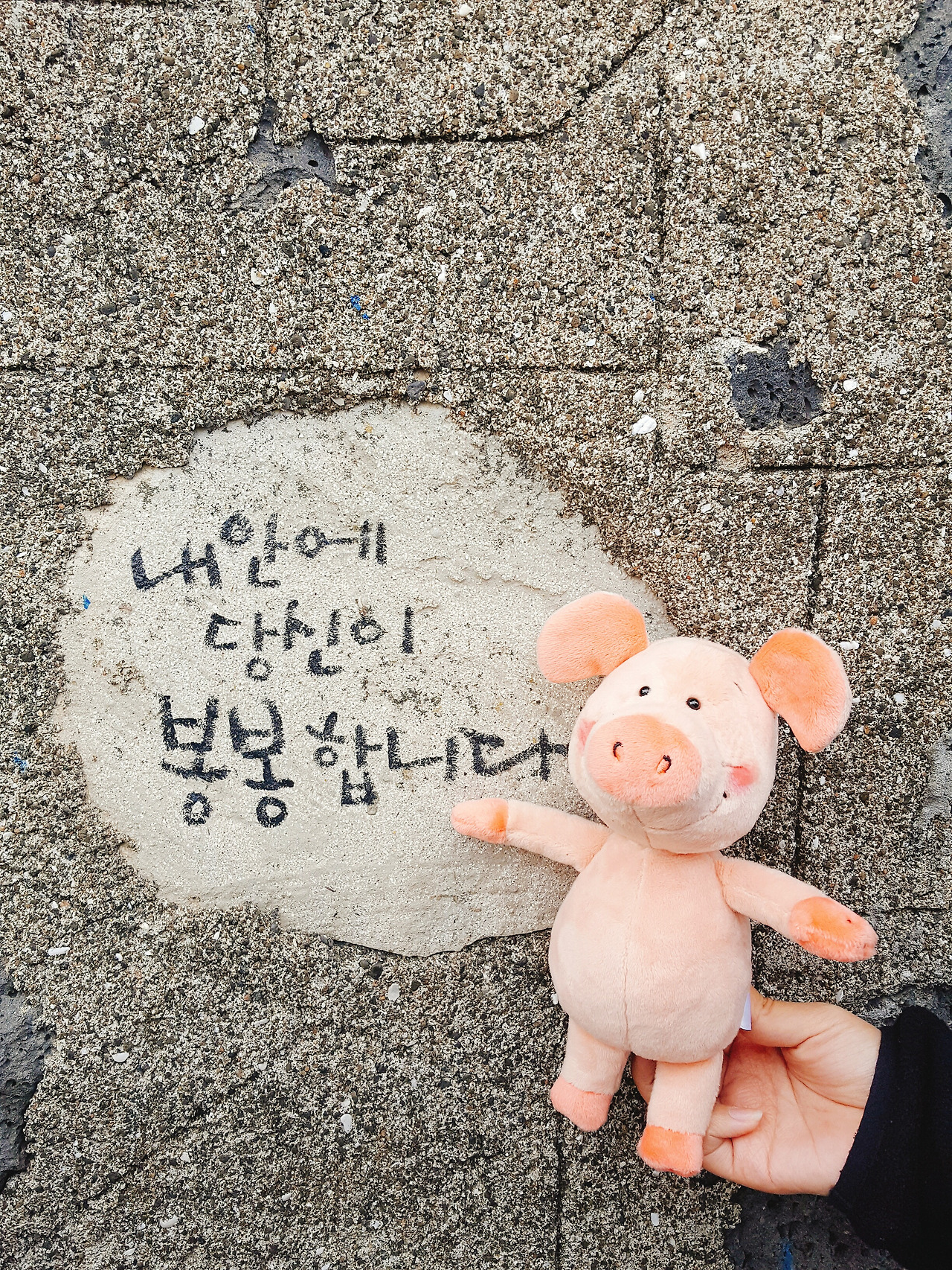 이 곳에 있는 오래된 비자나무는 '할아버지 비자나무'라고 불린다고 했다. 그런데 이 팻말을 보자마자 동생들 왈, "아까 본 건 엄청 큰 나무는 할머니 비자나무구나." 너무도 자연스럽게 '할머니 비자나무'를 떠올린 동생들을 보며 이들에게 아이들을 가르치는 일은 정말 천직인가 싶었다. 내 또래 친구들과 왔다면 들을 수 없는 말들이었다. 생각해보면 여행 내내 우리와 함께 했던 돼림이의 존재도 이들이 아직 얼마나 천진난만한지를 보여주는 모습이 아닐까 싶다.