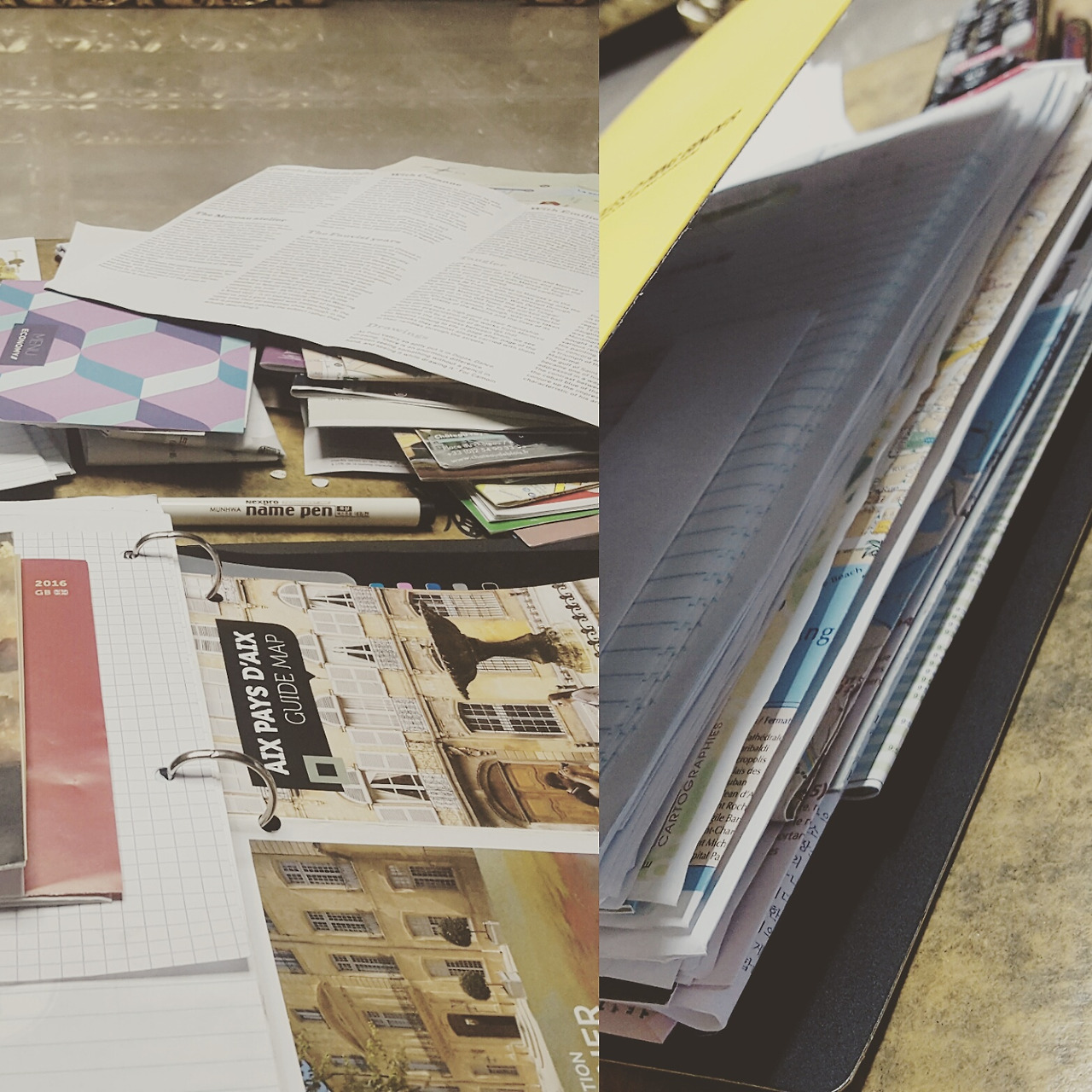 여행에서 수집해온 각종 티켓과 지도, 브로슈어, 영수증 들을 날짜별로 스크랩한 바인더 노트. 미국 실습 때부터 시작한 바인더가 어느새 두 권째에 이르렀다. 여행 바인더의 장점은, 내가 어떤 경로를 따라 여행을 했는지, 마치 지도가 펼쳐지 듯 한눈에 보인다는 점이다.