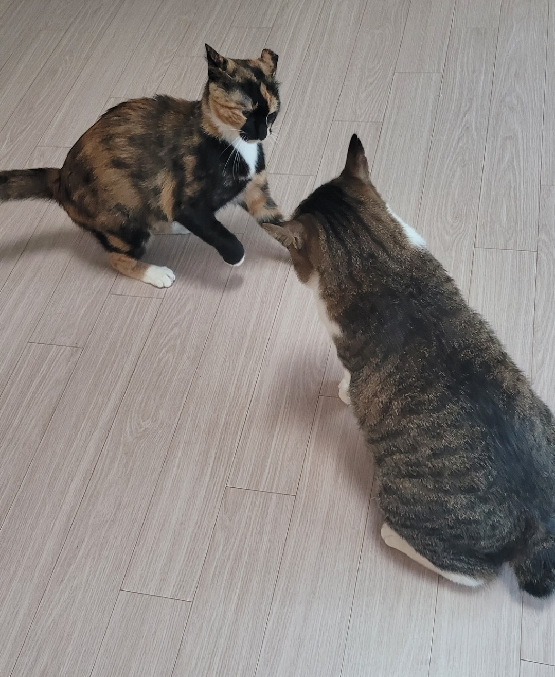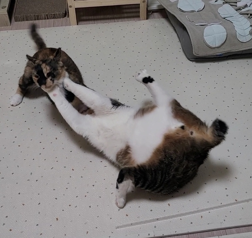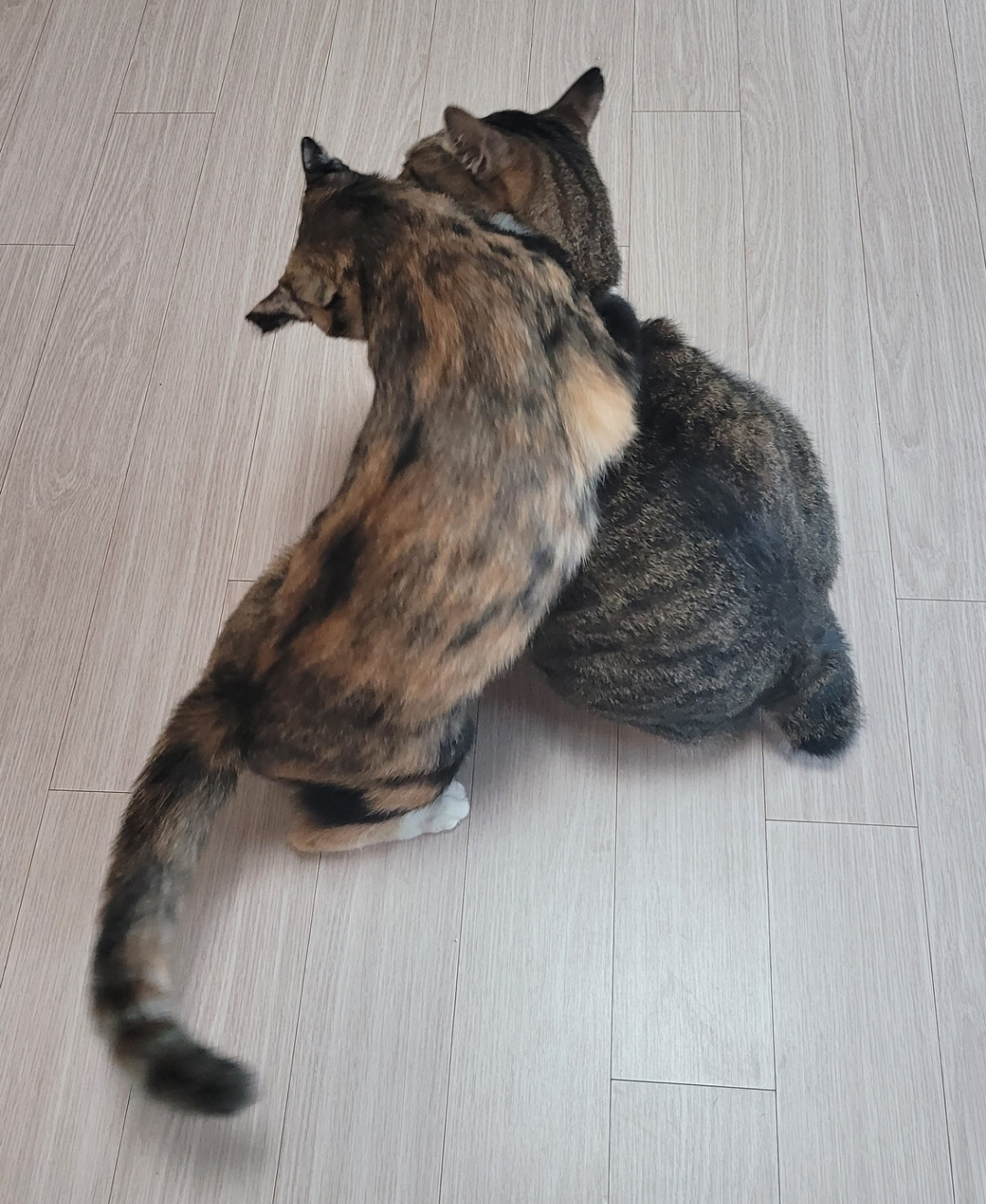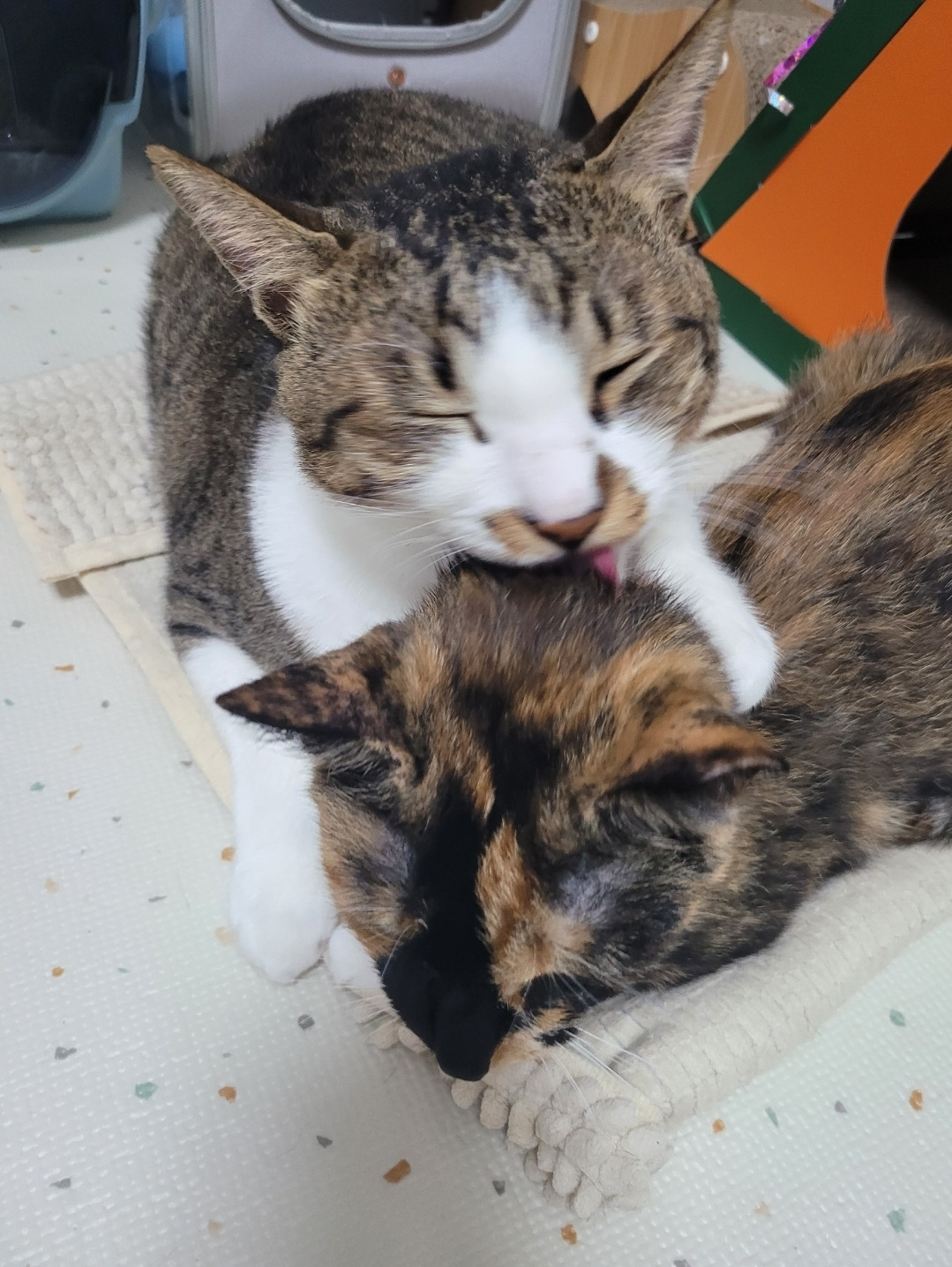 그래도 쫄랑이 오빠는 착해서 그루밍도 해줘요.