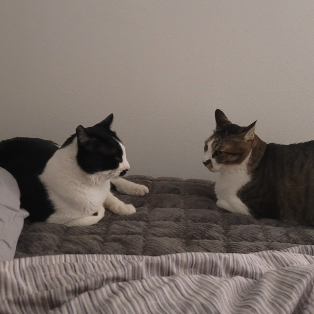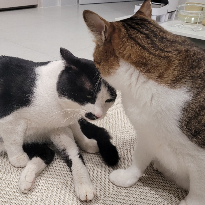 처음 보는 다른 고양이들이 어색한가 봐요.