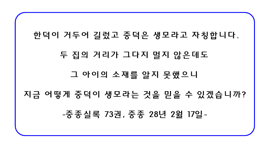 또한 이 한덕의 주장에 힘을 실어줄만한 내용들이 조사를 통해 나오기 시작하는데, 한덕이 그 아이를 버린