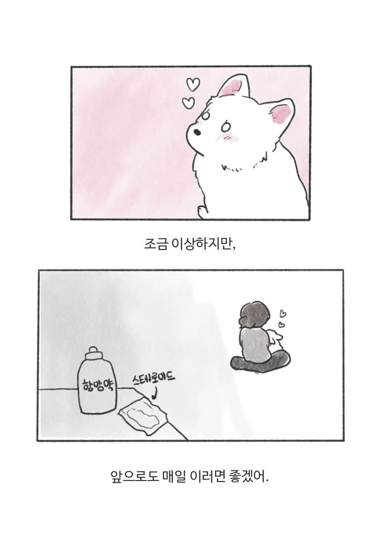 그냥 알약은 삼키기 싫을테니 가장 좋아하던 통조림에 섞어서 주고, 써서 먹기 힘든 가루는 달달한 우유에 섞어줬다.
