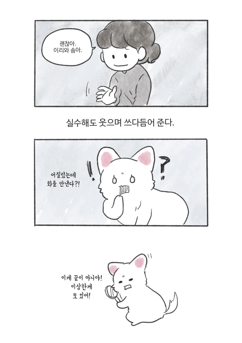 실수를 해도 더 이상 혼내지 못하겠다는 생각이 든다. 실수해도 뭐 어때, 활기차게 돌아다니고 장난칠 수 있으면 오히려 다행이지.