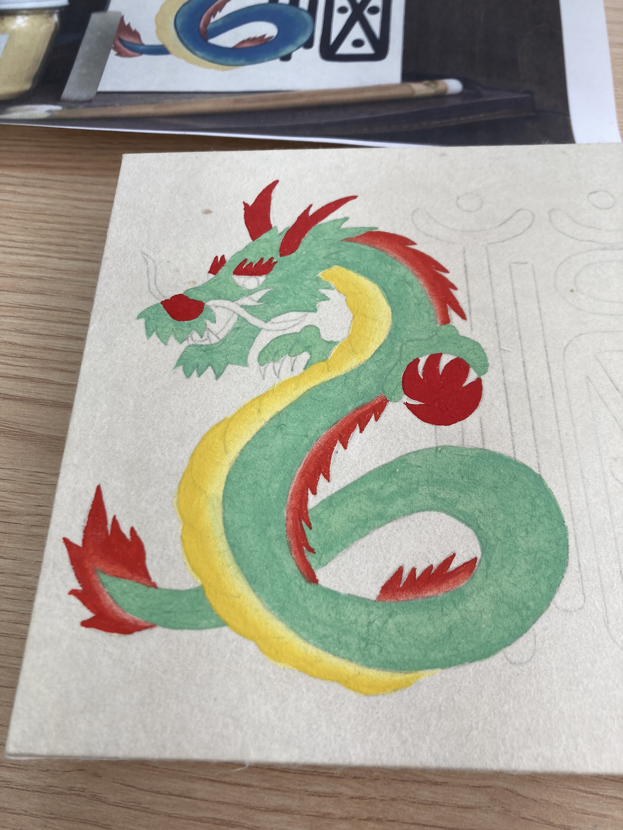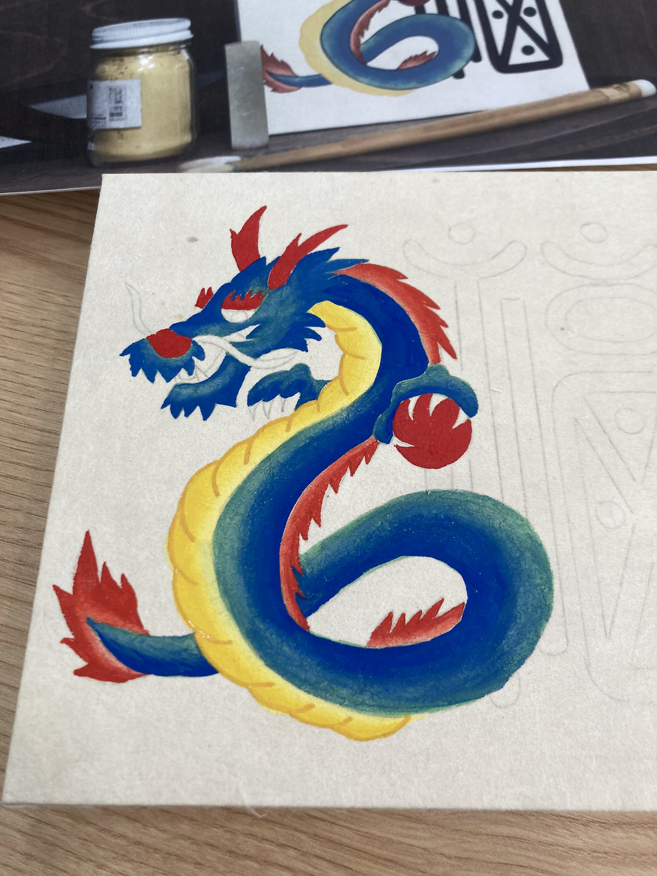 좋다. 오래전 해보고 싶던 것을 드디어 하게 되어서 기분이 좋고, 한지의 오묘한 느낌도 좋다. 수채화도 아크릴도 아닌, 민화용 물감의 조금 낯선 물성도 좋다. 붓을 손에 쥐어보는 것도 정말 오랜만이라 어린이로 되돌아간 듯 즐겁다.