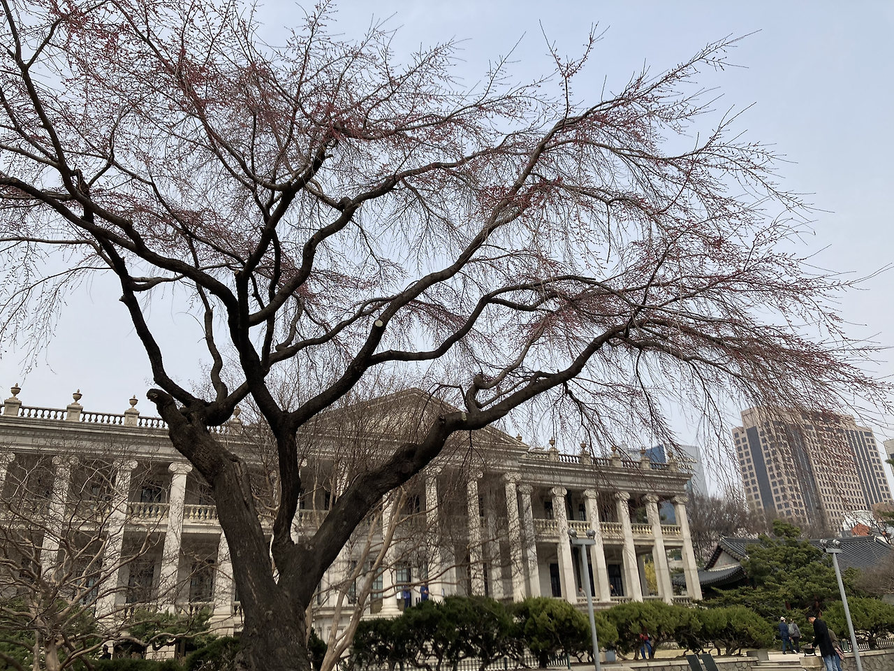 미술관 앞 벚나무가 유명한 것 같은데 아직 개화하지 않았다. 석어당 앞 딱 한그루의 나무만 꽃이 피어 있었고 대체로 경내는 앙상했다. 생각해 보니 집 앞 꽃나무들이 꽃을 피우지 않았는데 덕수궁이라고 피었을 리가.