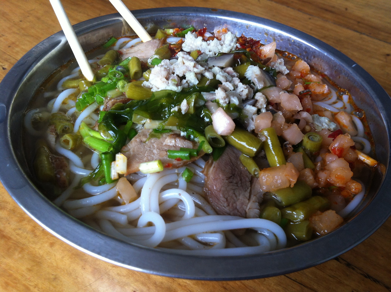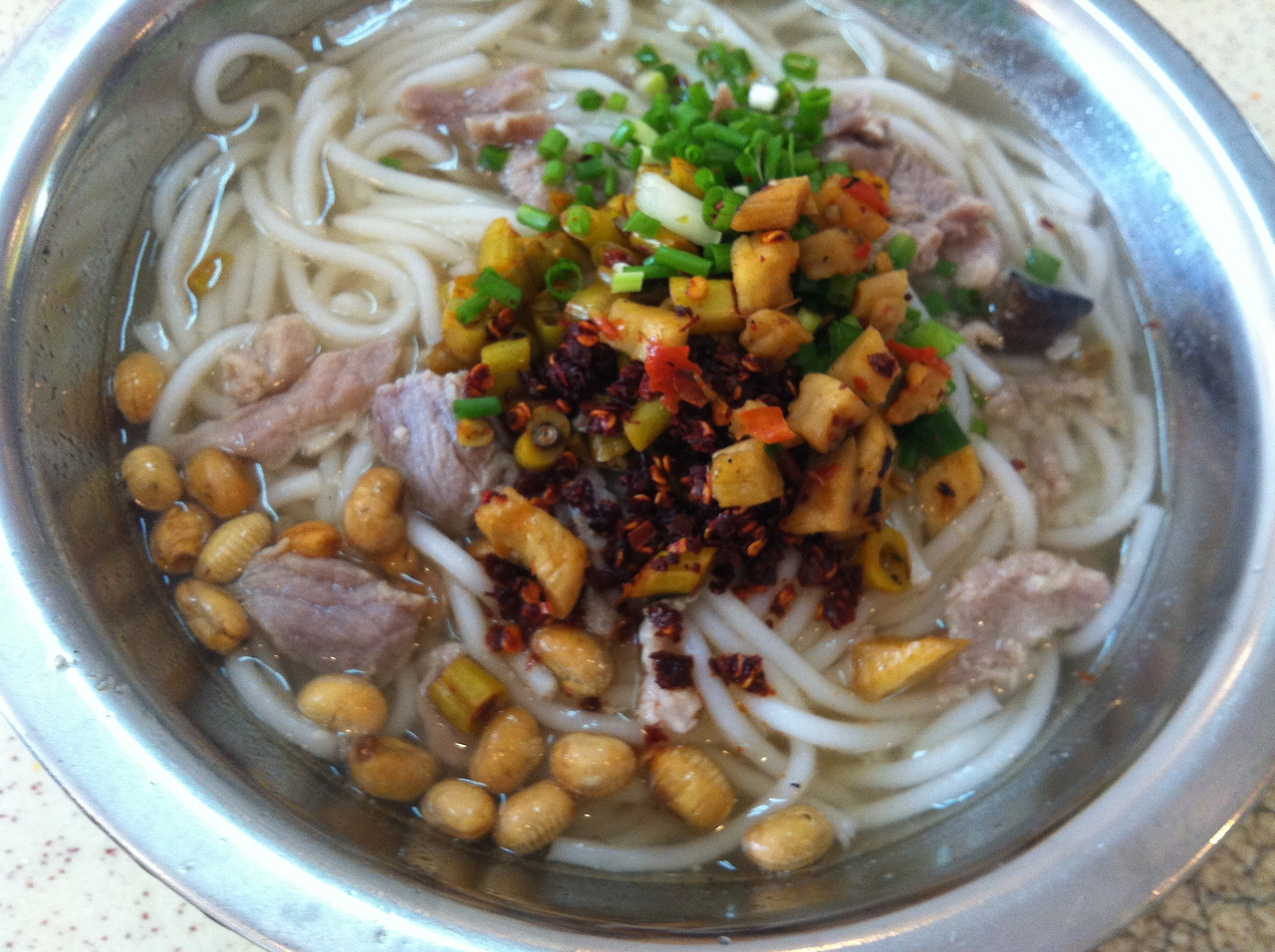 계란이나 고기를 추가하는 것도 배웠는데 써먹지 않아서 기억에 없다. 왜냐하면 구이린 미펀은 장아찌만 듬뿍 들어간 국수로 첫인상이 강하게 남아있어서 거기에 뭔가를 추가하는 것은 정석이 아니라는 기분이 들어서였다. 계림 사람들이 동의할지 아닐지는 모르겠으나 어차피 내 마음 아니겠는가.
