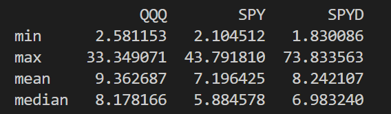 의외로 요일별 누적 수익률 차이가 거의 없다. 이상하다. 음.. Cost averaging 효과일 수도 있고 (비싸면 적게 사니까) Weekend effect 수익률 계산할 때는 일할로 계산했나 싶기도 하다. 모르겠다.