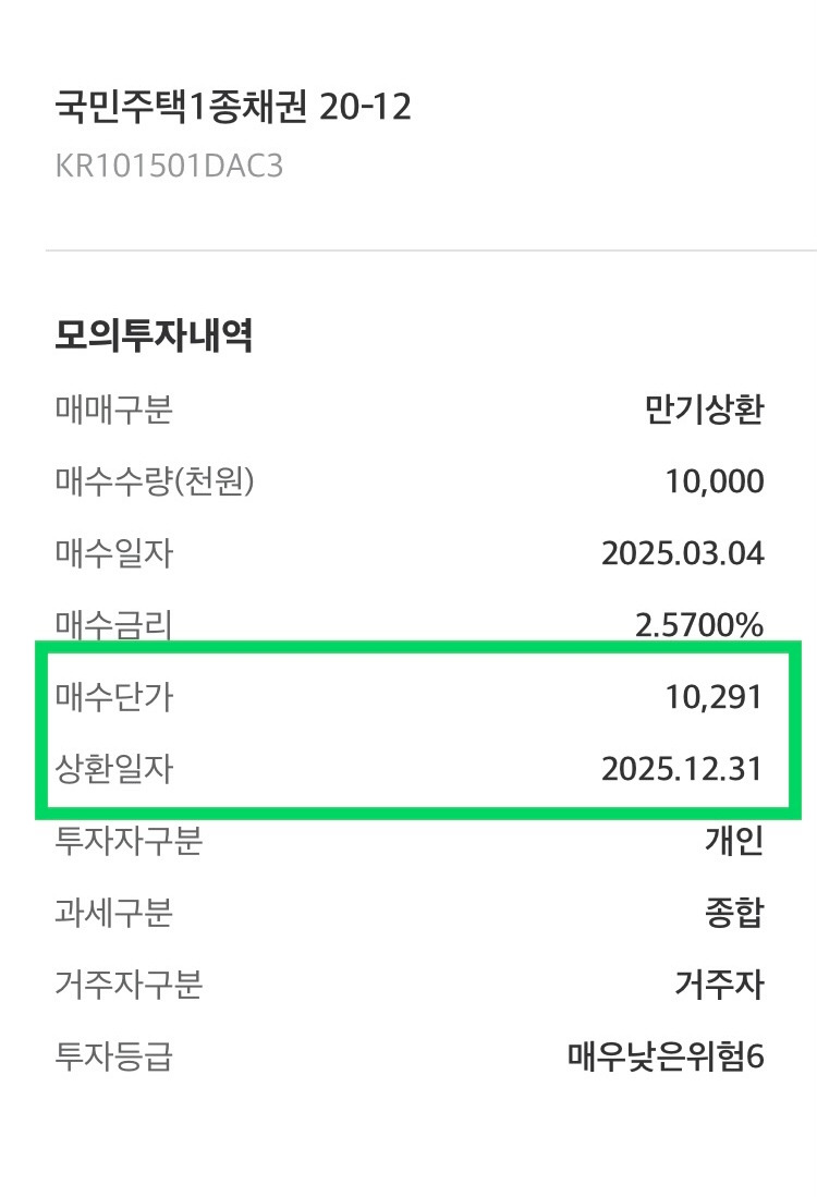 아래 채권이 딱 좋은 예다. 국민주택1종채권 20-12