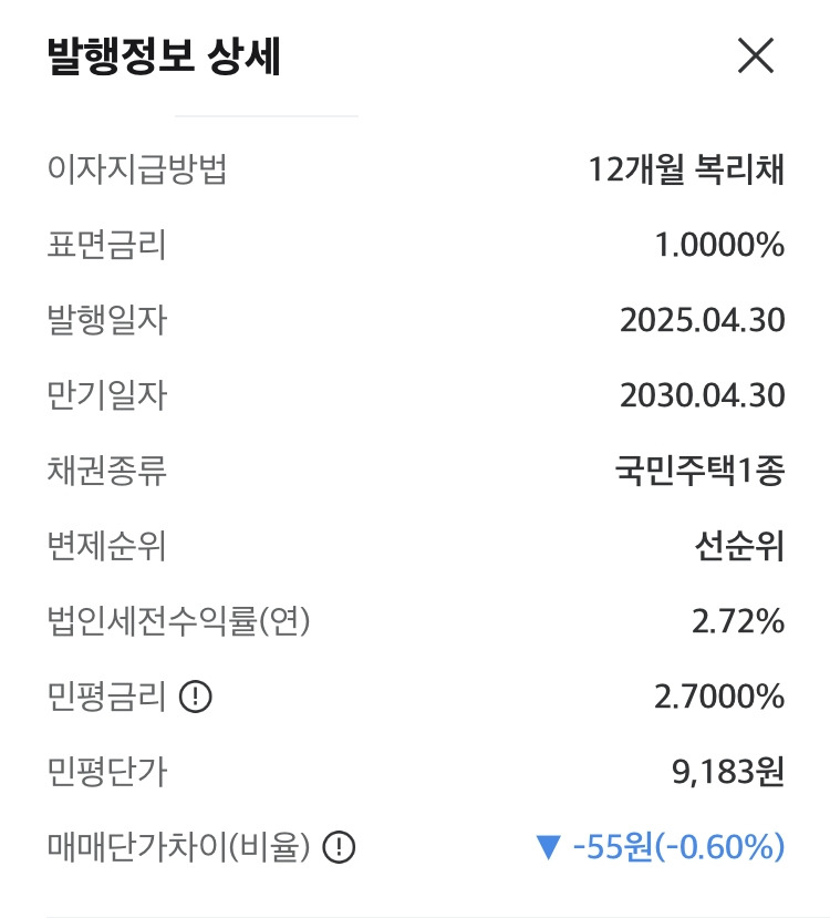 기업은행 중금채 만기된 것으로 국민주택채권을 구입했다. 가장 큰 이유는 역시 건강보험료 때문이다. 국민주택 채권의 수익률이 중금채 금리보다 아주 약간 높기도 하지만, 그보다는 실수익이 동일해도 과세대상금액이 적어 건강보험료가 줄어든다는 점이 중요했다. 앞으로 보험료율이 오를 테니 더 가벼이 볼 수 없다.